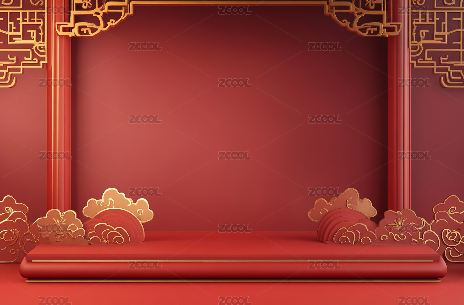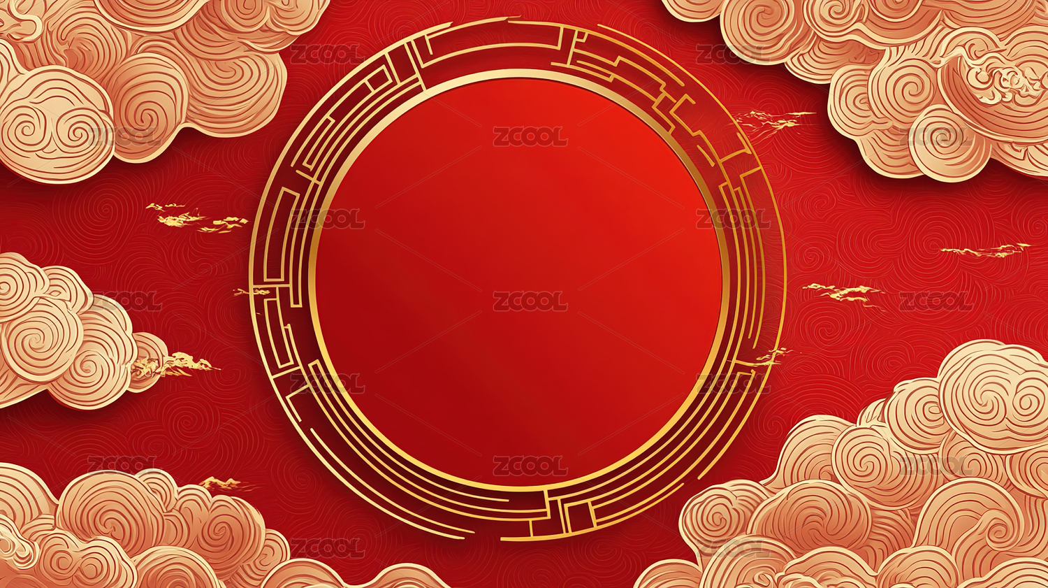 中国风红色背景庆祝新年黄色云纹