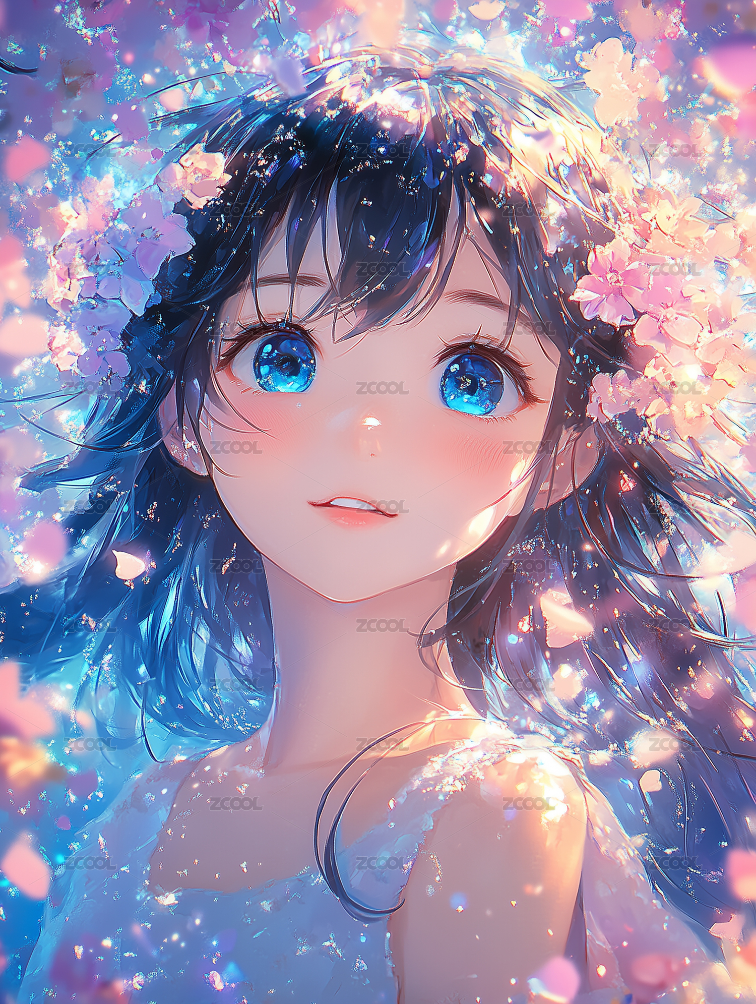 动漫,美少女,卡通,气泡,长发,女生,写真,壁纸,二次元