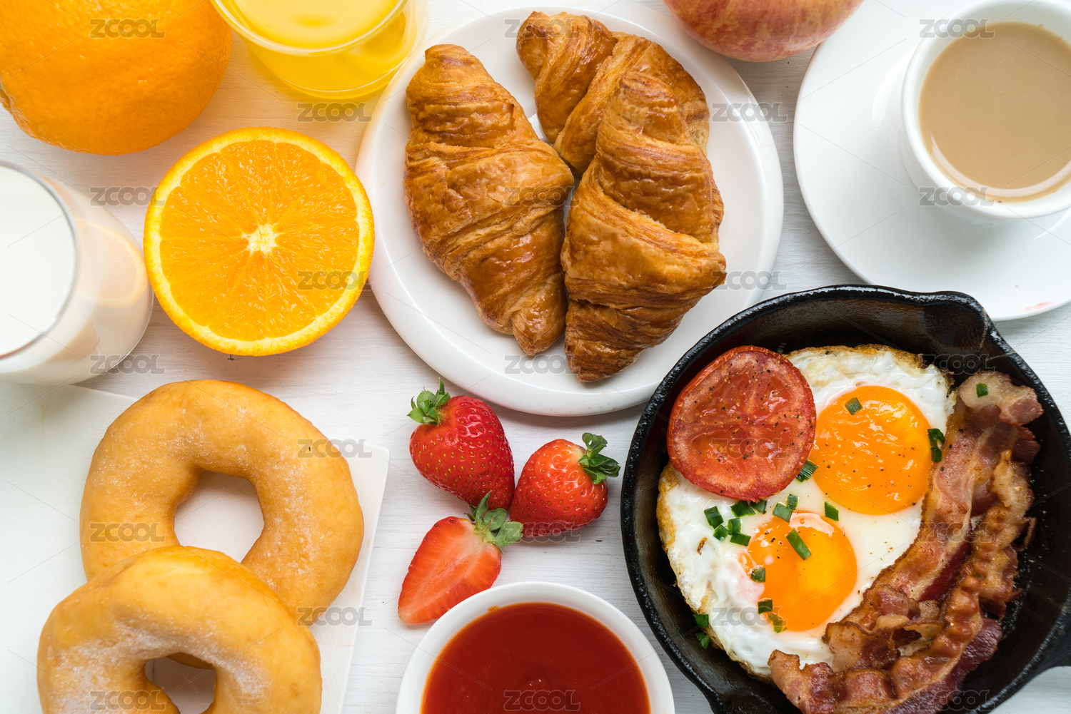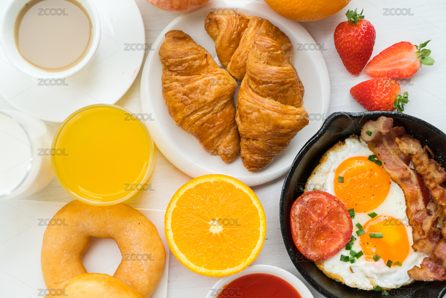 培根,可颂,饮料,蓝莓,面包,早餐,自助餐,谷类食品,咖啡,羊角面包