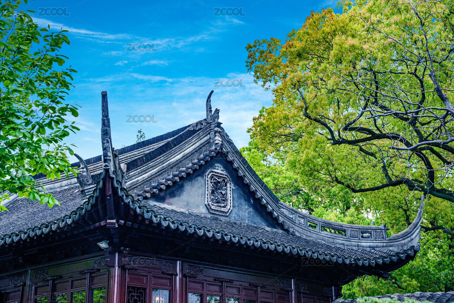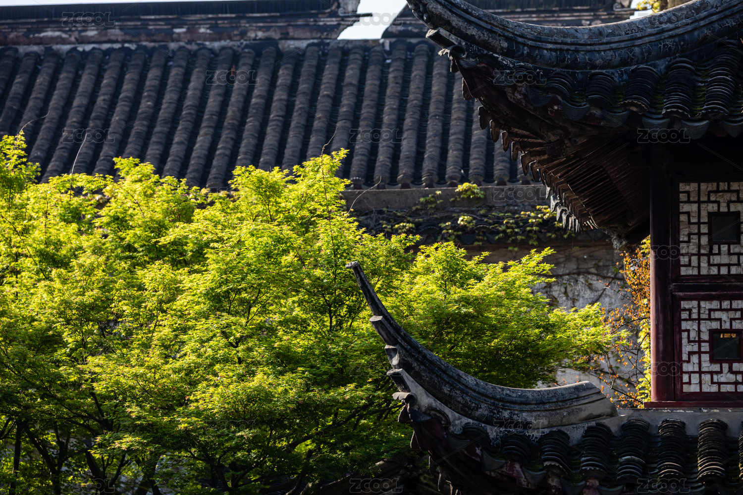 成都杜甫草堂博物馆古建筑屋檐青苔与银杏