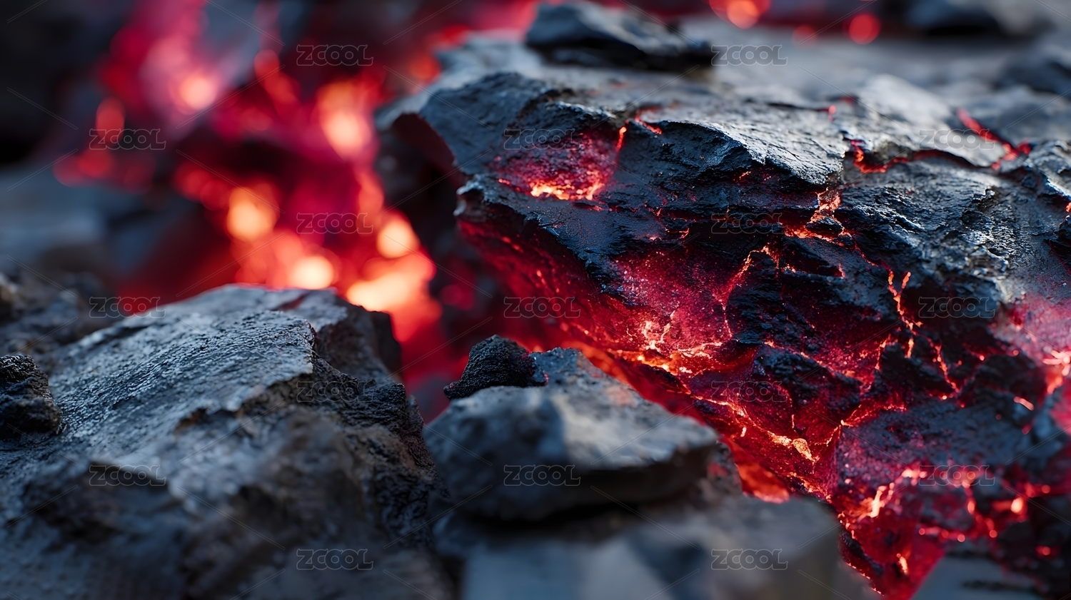 夜晚地震地面裂开涌出炙热岩浆3D立体场景