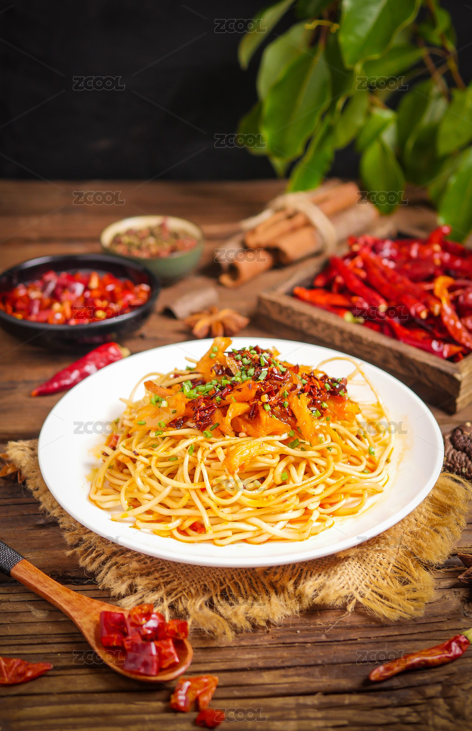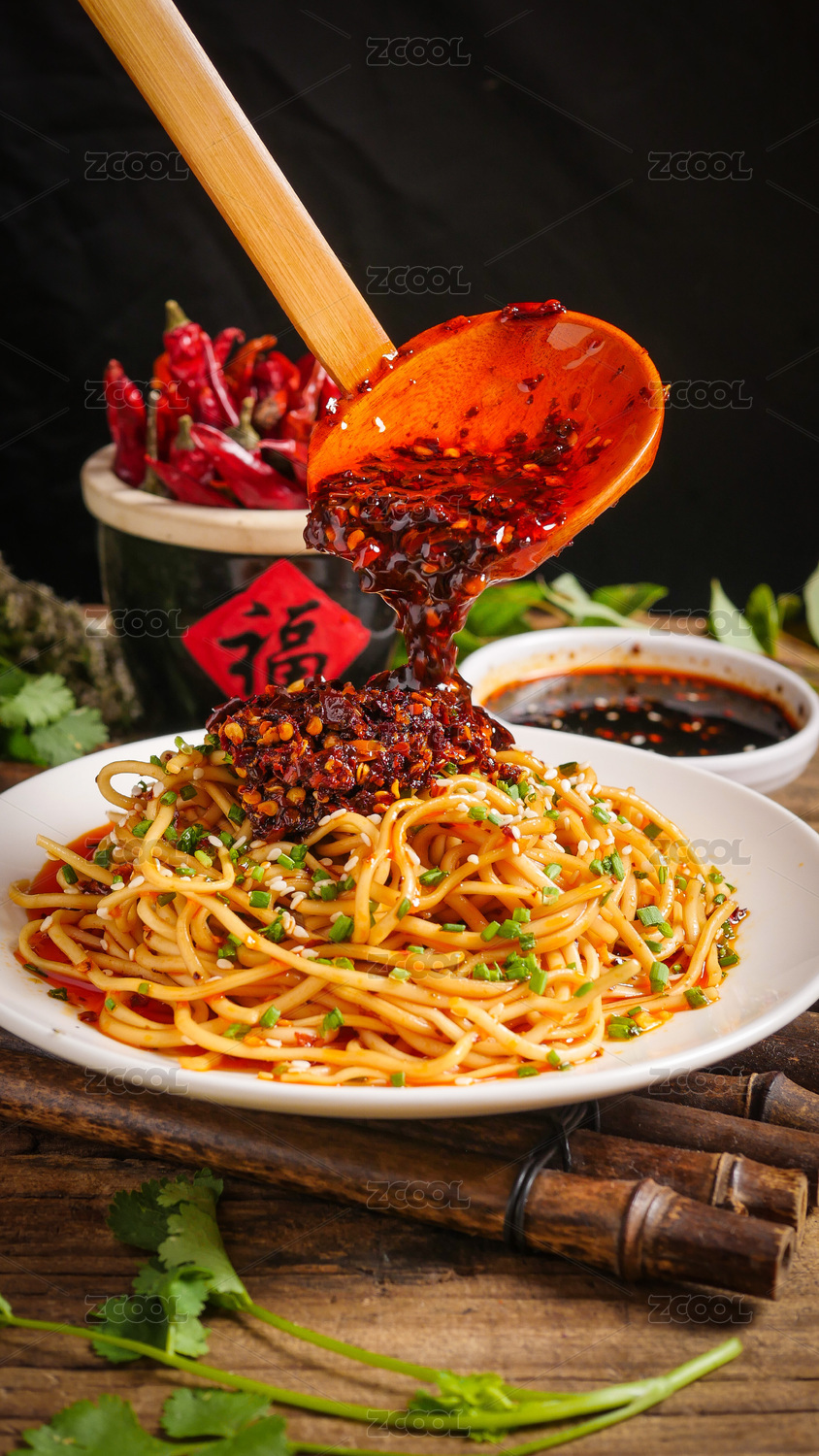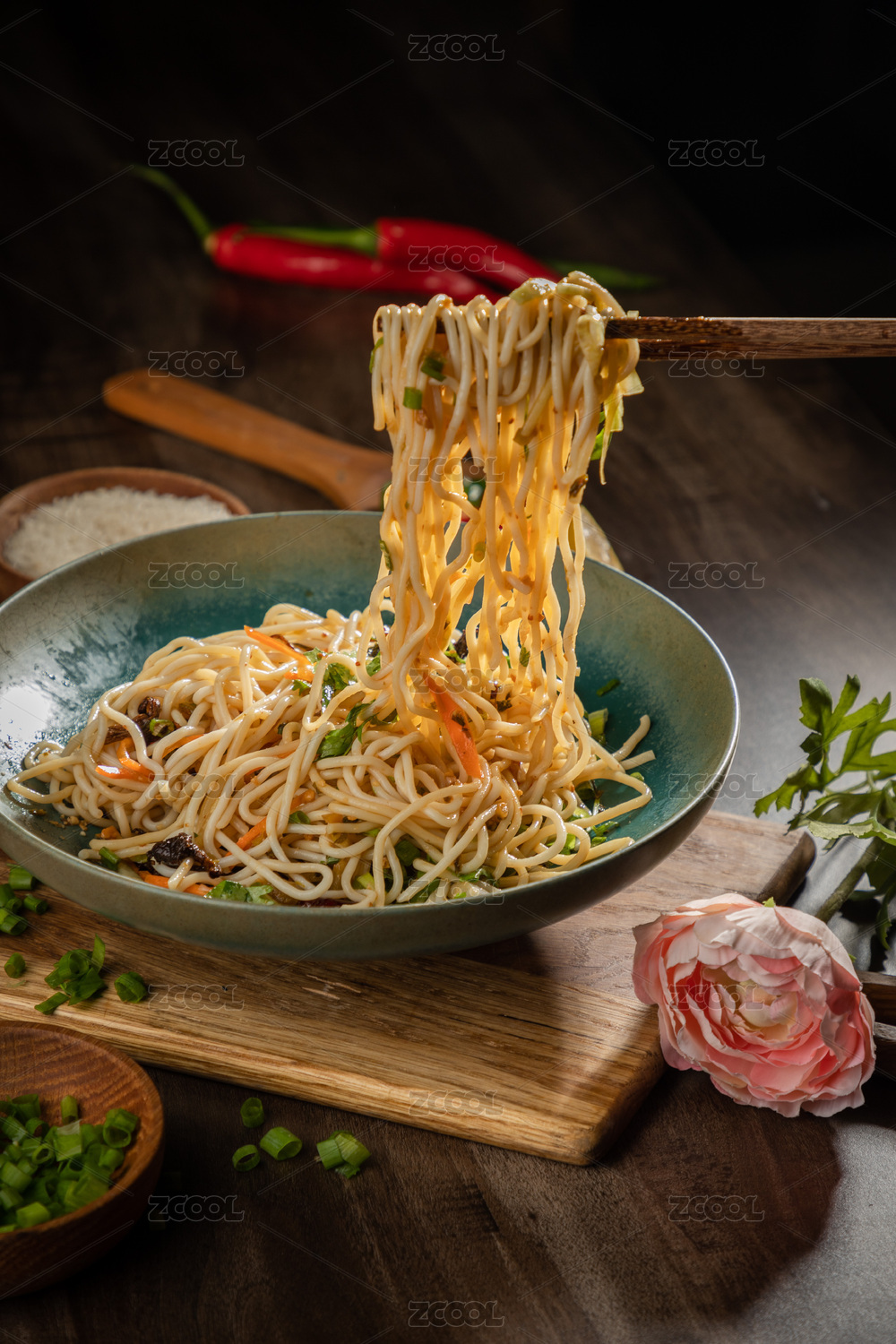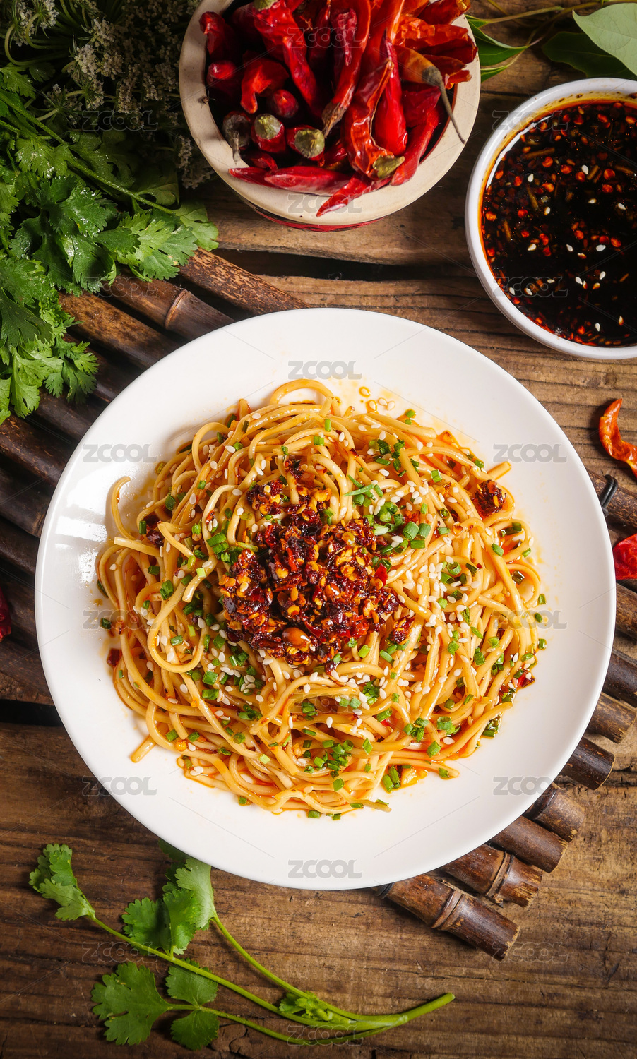 青花瓷碗里的小吃麻辣凉面重庆凉面拌面