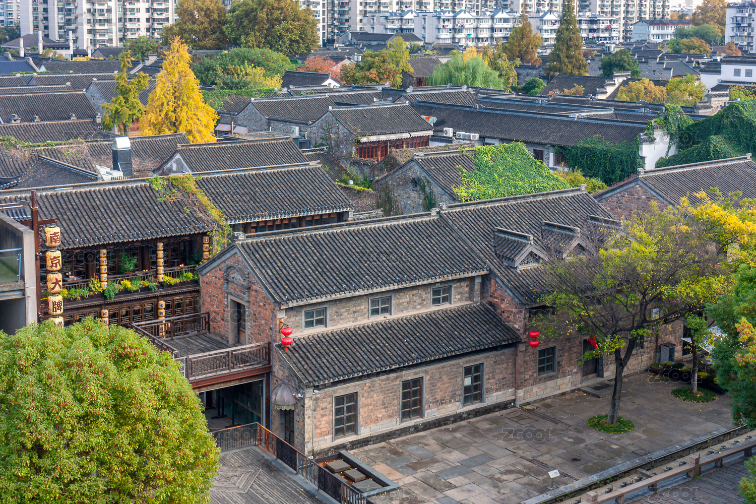 航拍中国江苏省无锡市锡山区鹅湖镇荡口古镇