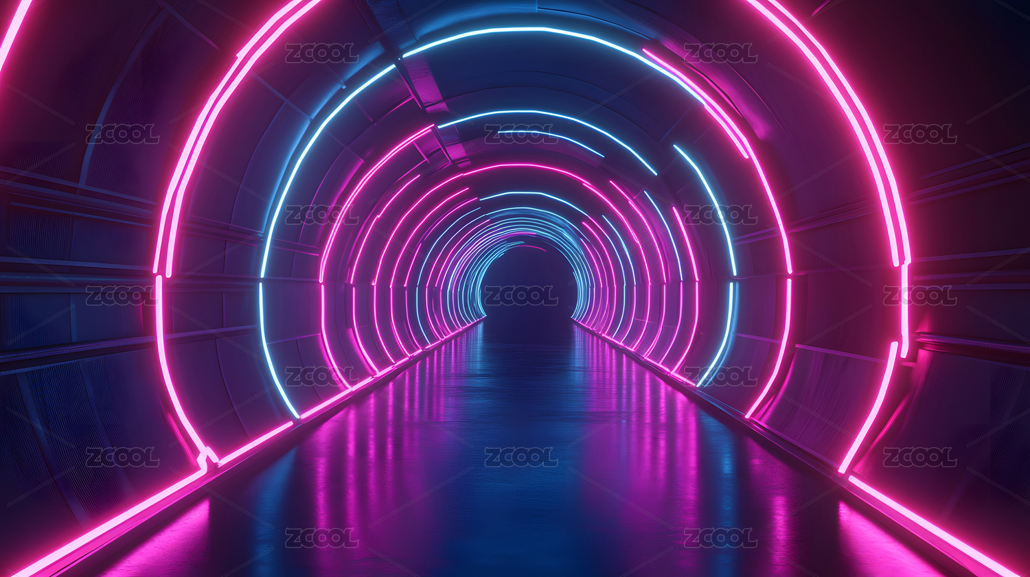 霓虹灯迷幻的空旷隧道