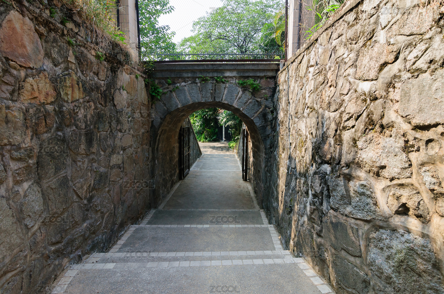 一条石子小径两边是石造的墙