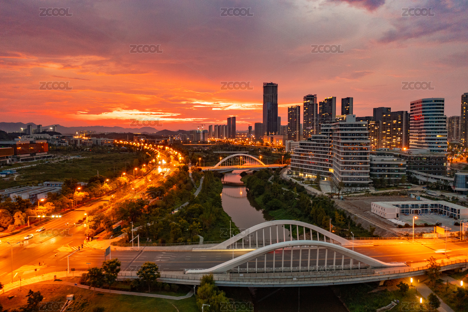 浙江义乌城市夜景晚霞风光鸟瞰航拍全景