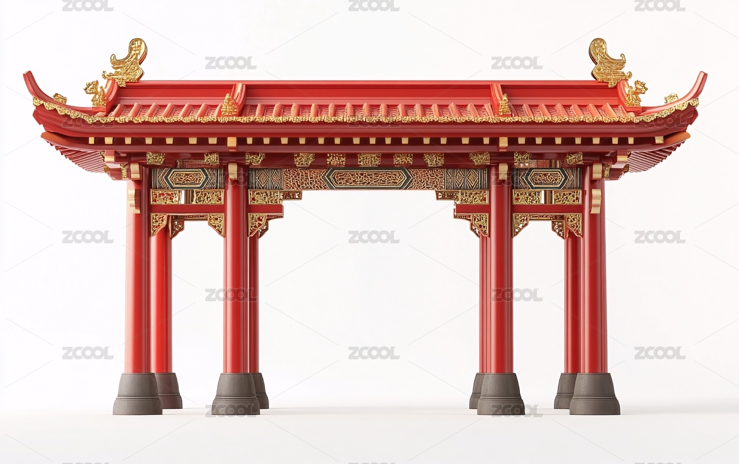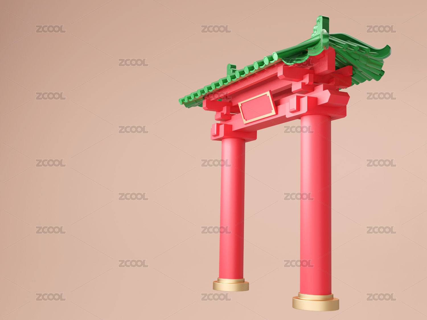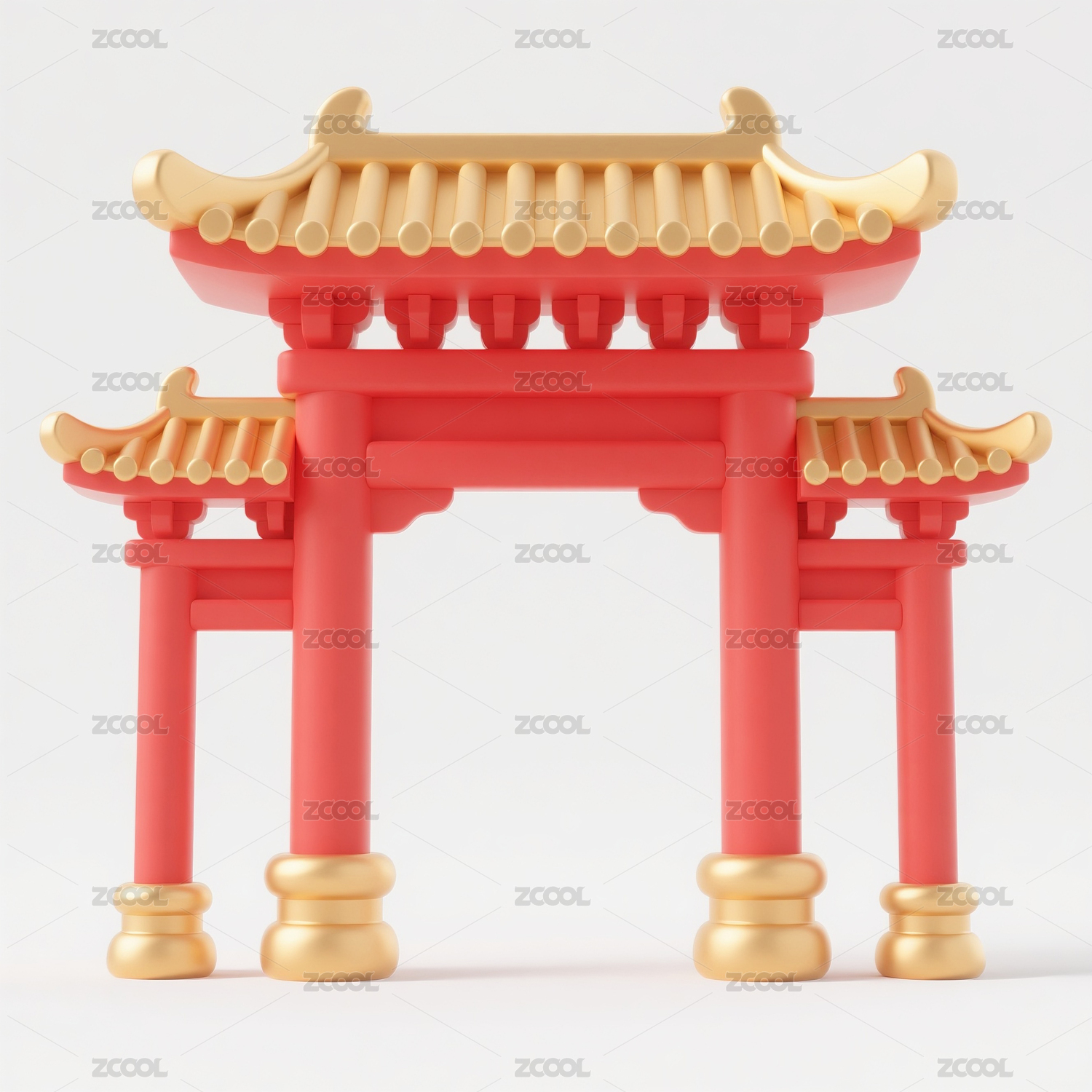 牌坊门楼3D插画