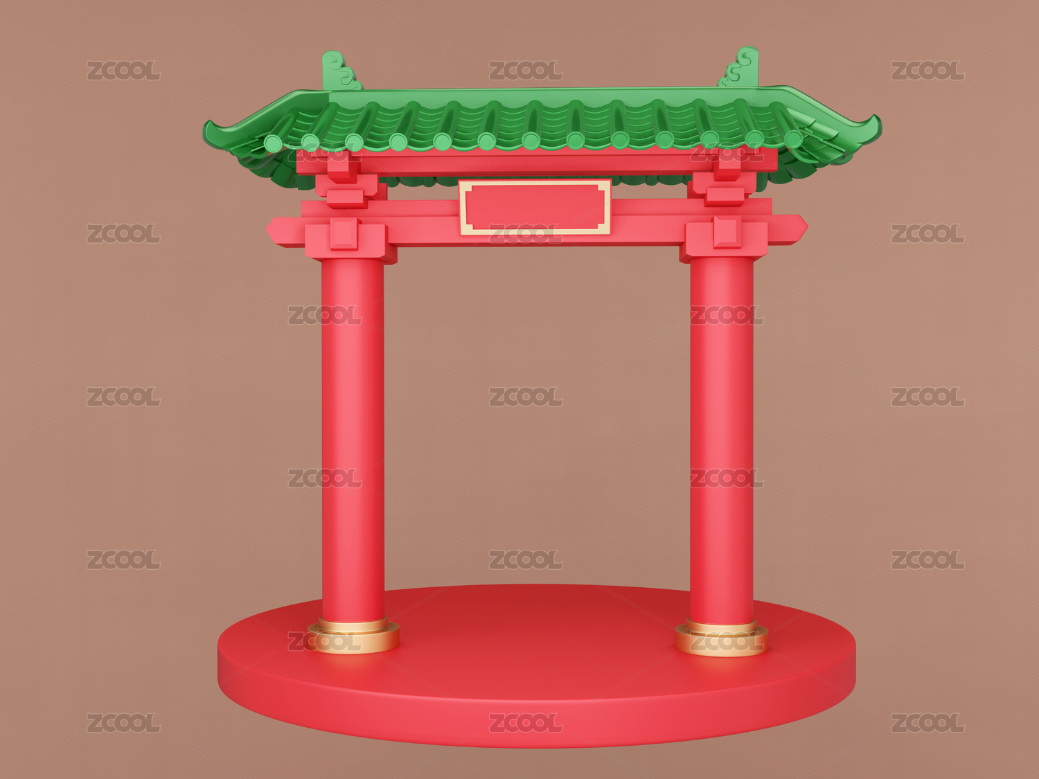 牌楼,门楼,中式,古建筑,新年,春节,绿瓦,牌坊,斗拱,3D