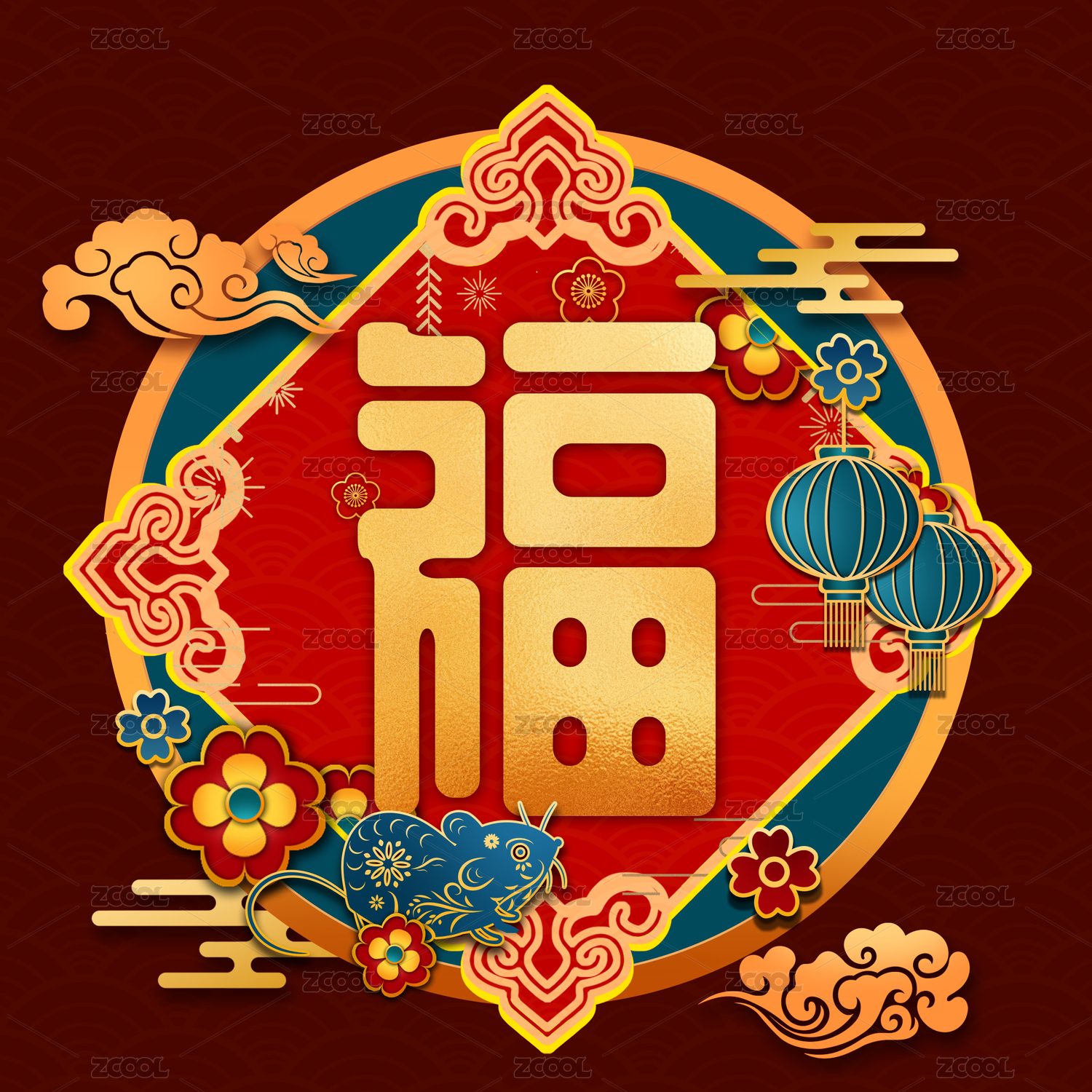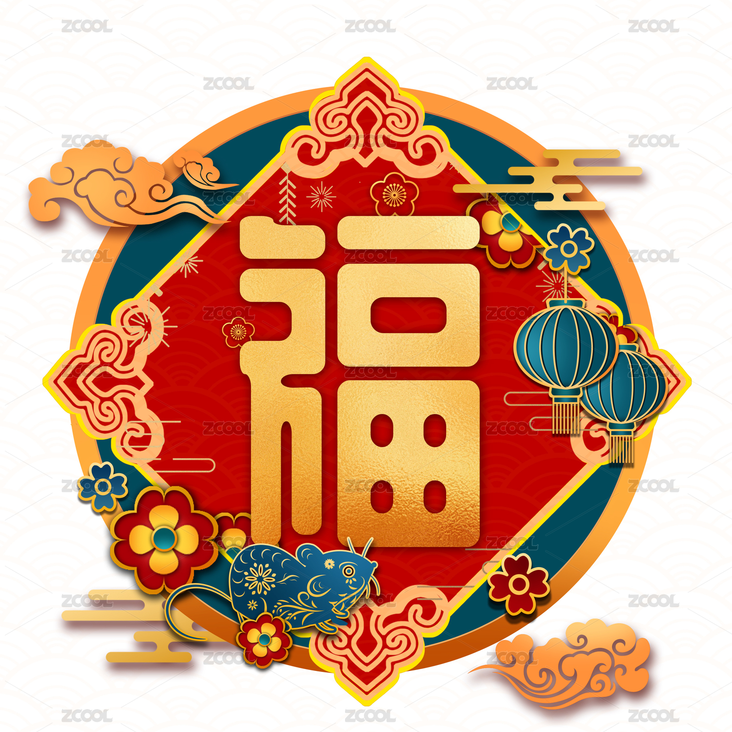 花瓣窗花福字灯笼祥云