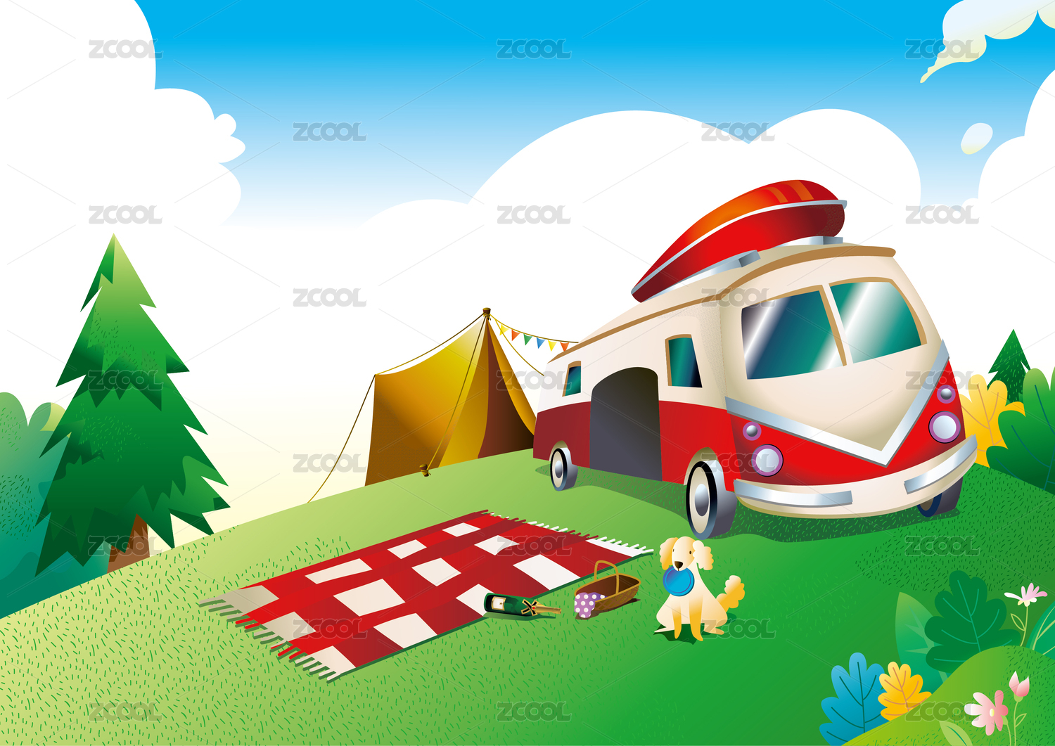 露营,户外,露营插画,烧烤,野餐,插画,夏天,踏青
