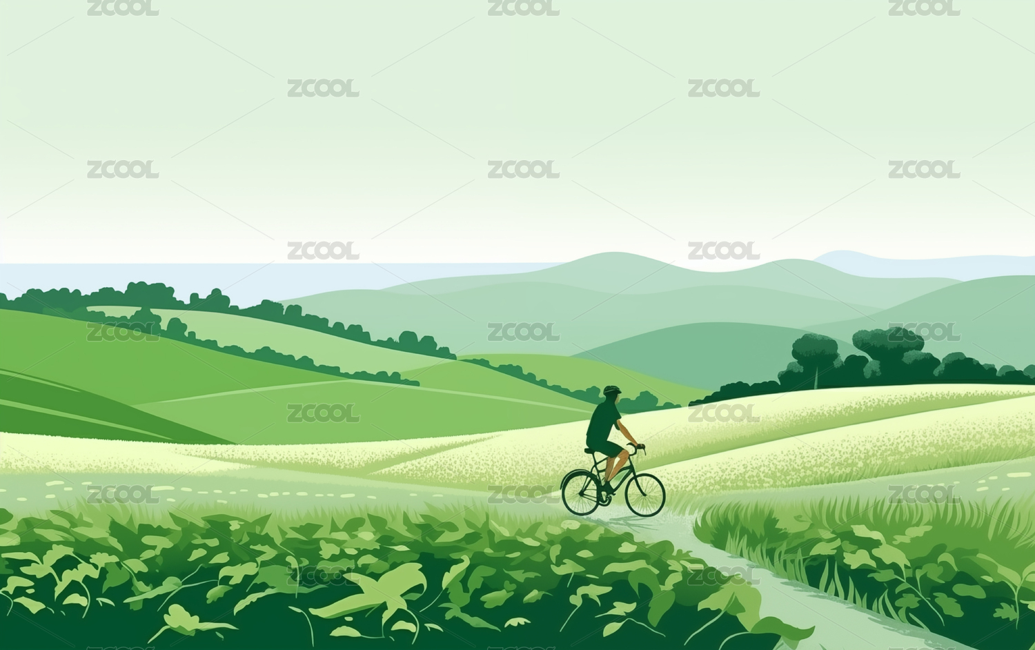 郊外骑自行车插画