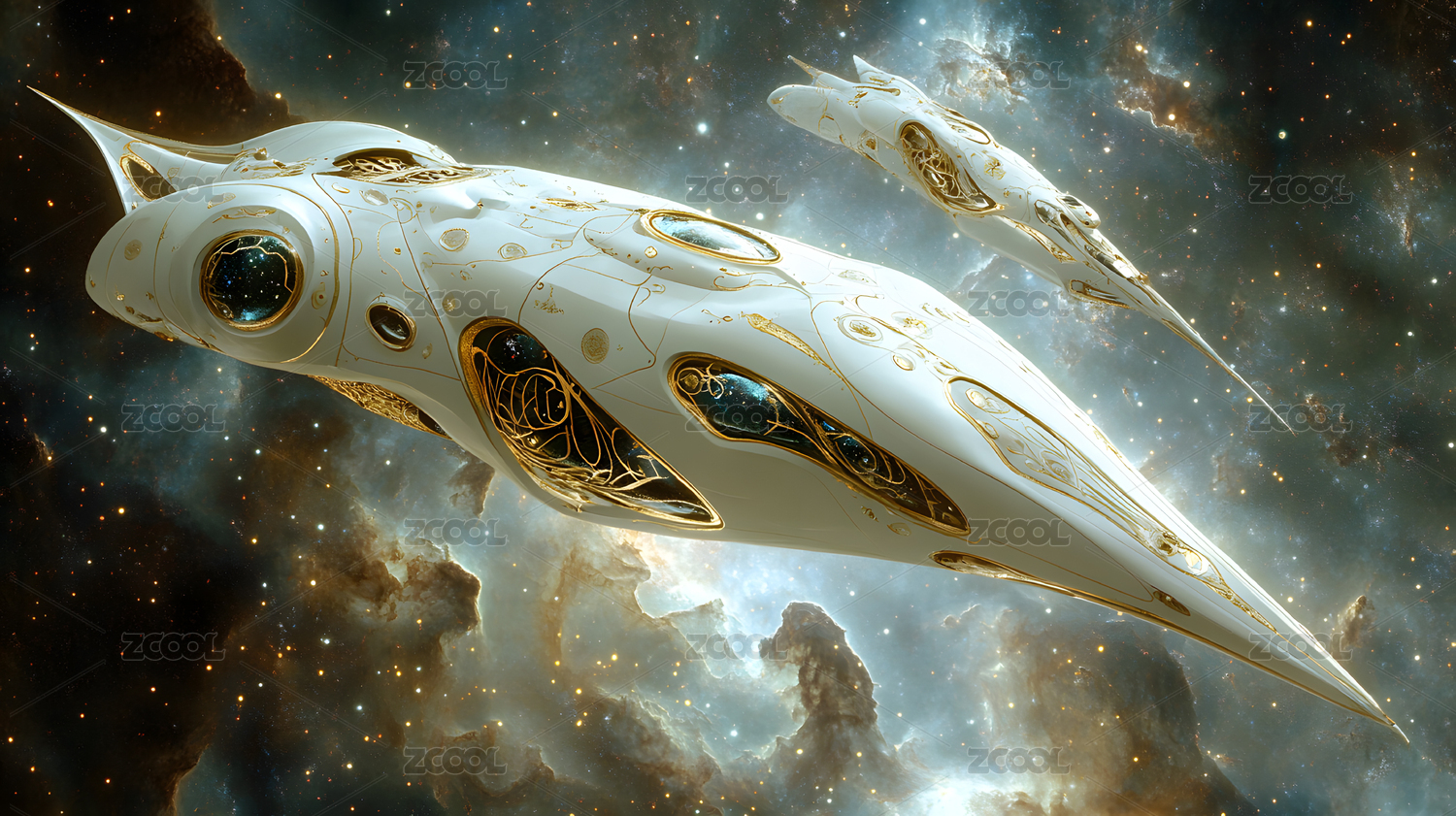 宇宙飞船星云背景航行