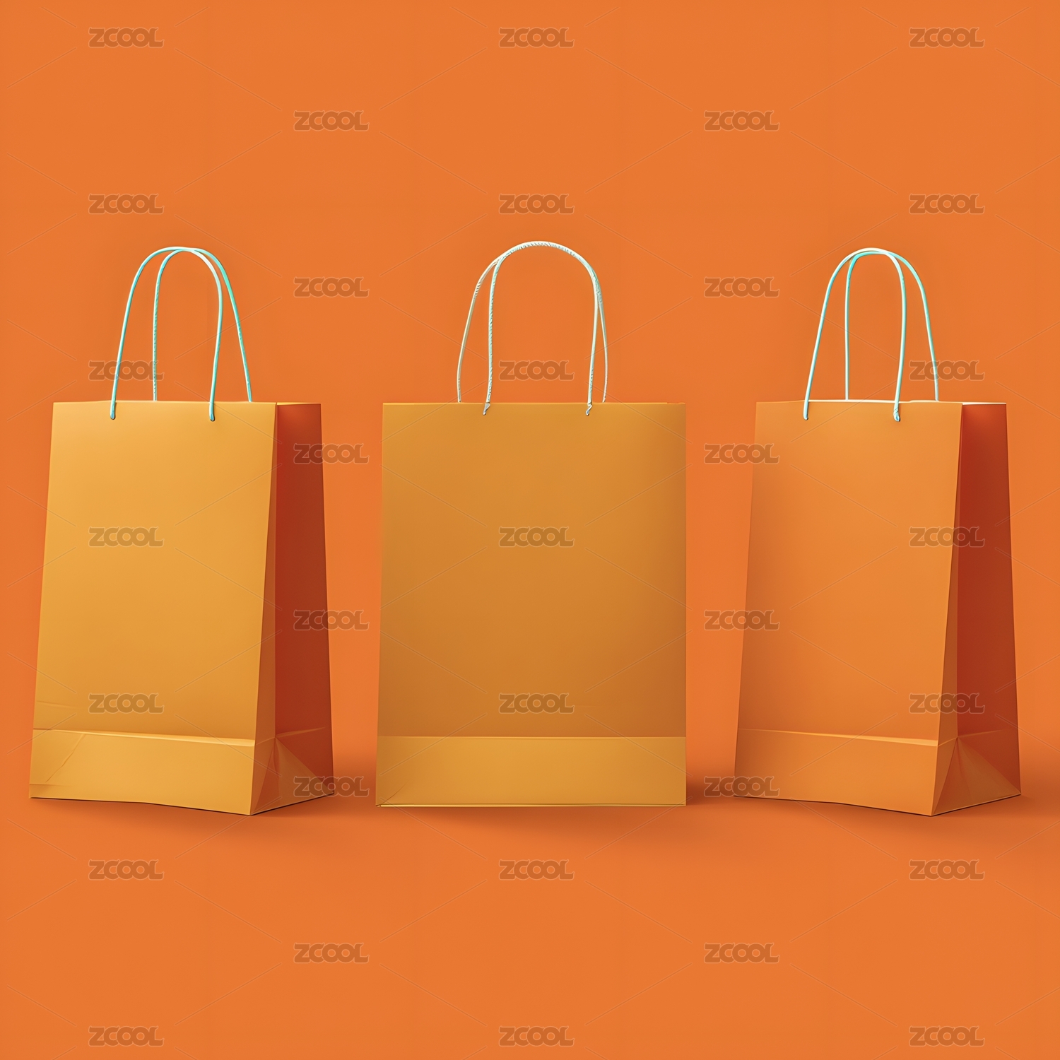 环保纸袋生态再生纸制成的3D渲染购物袋