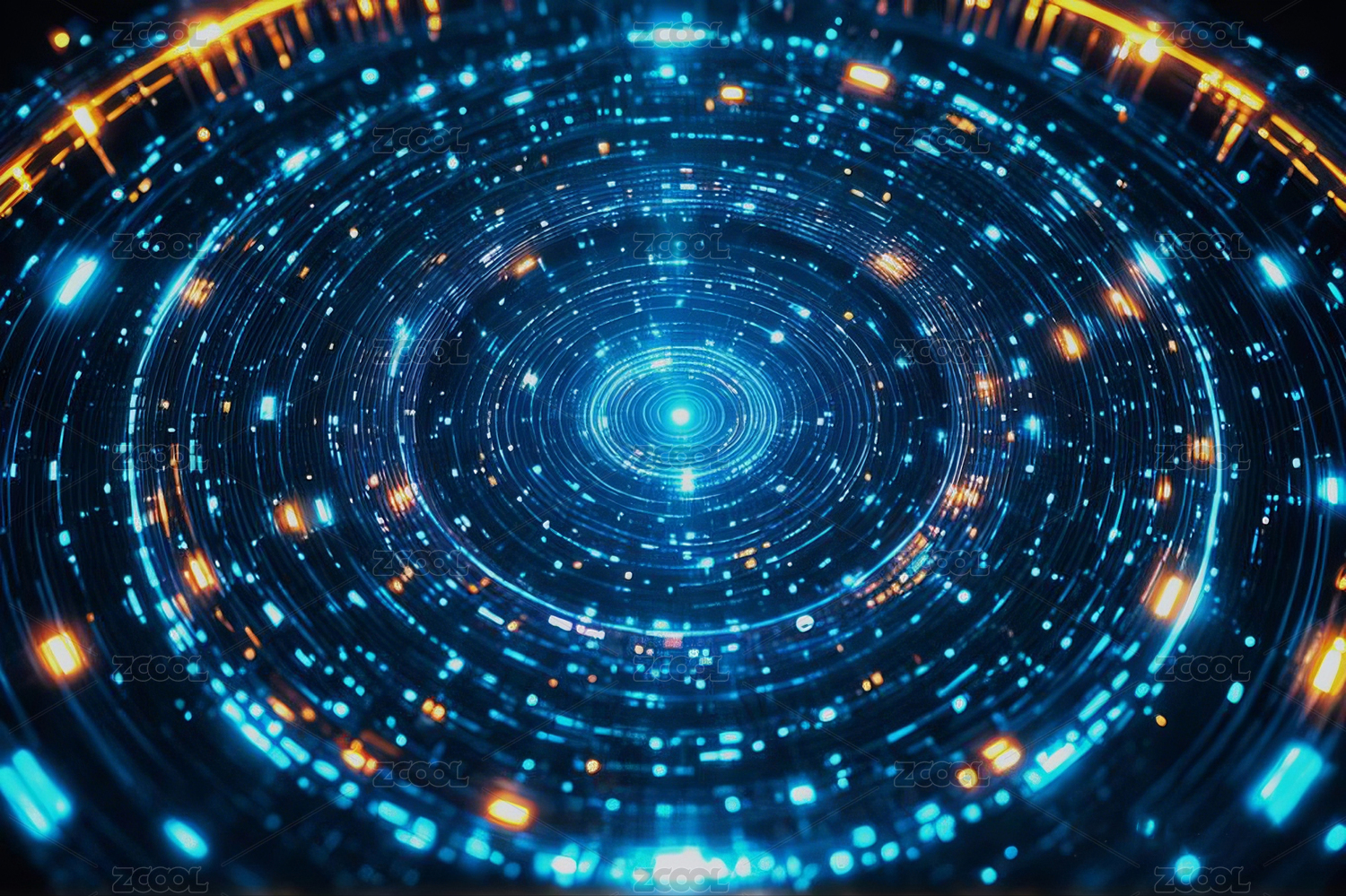 蓝色科技全息抽象霓虹光效粒子光纤圆背景