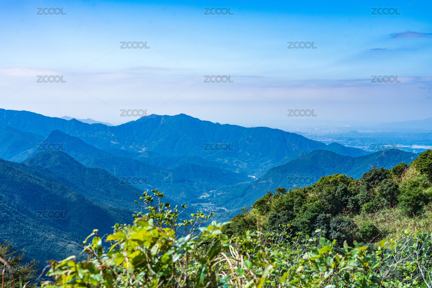 秋天蓝天白云下中国张家界天门山景区绵延起伏的莽莽群山