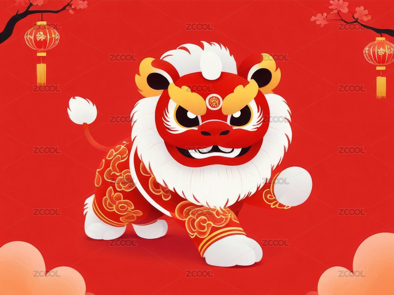 新年灯笼舞狮元素,可以自行加文字和祝福语