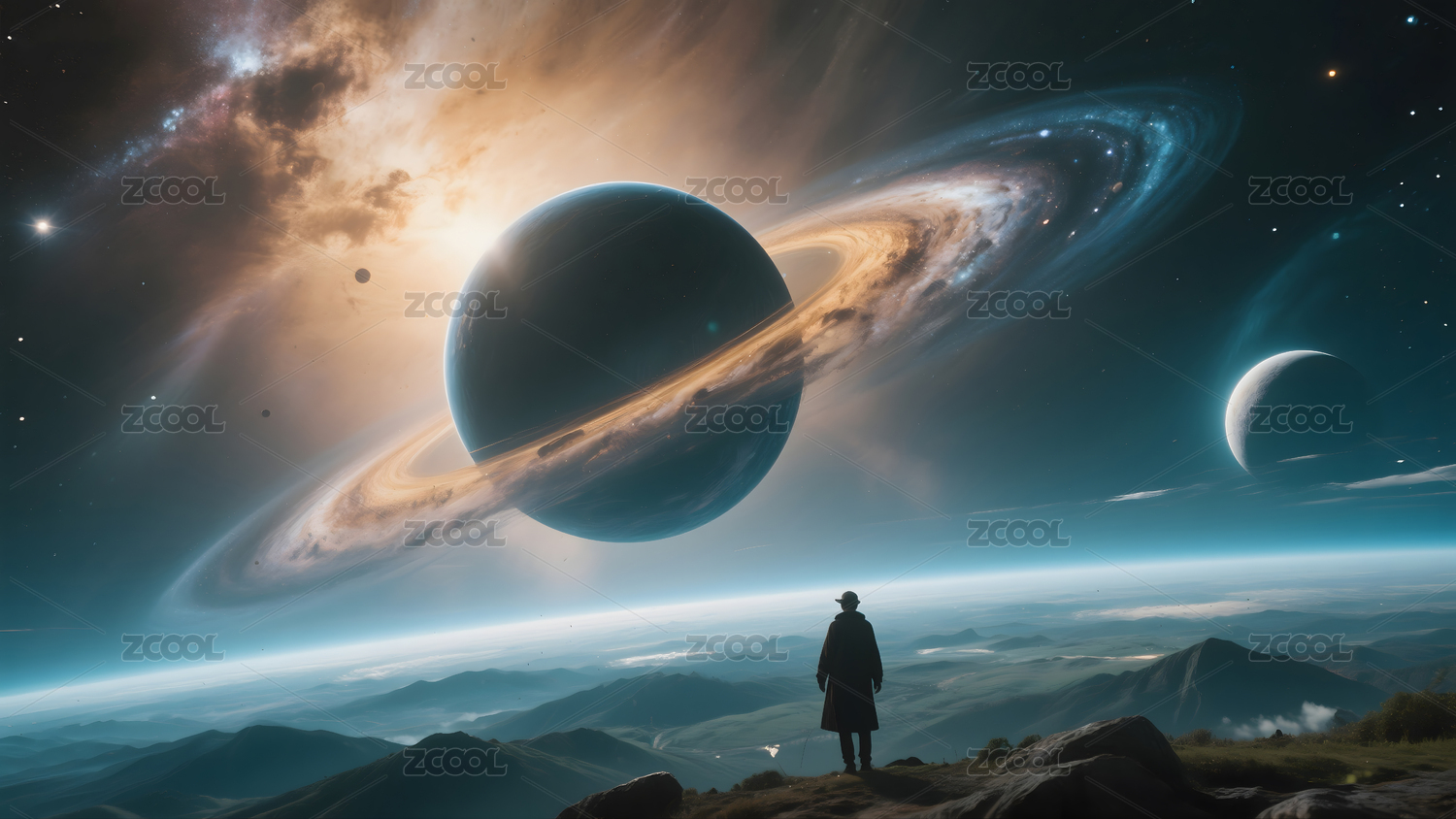 一个人眺望宇宙星球