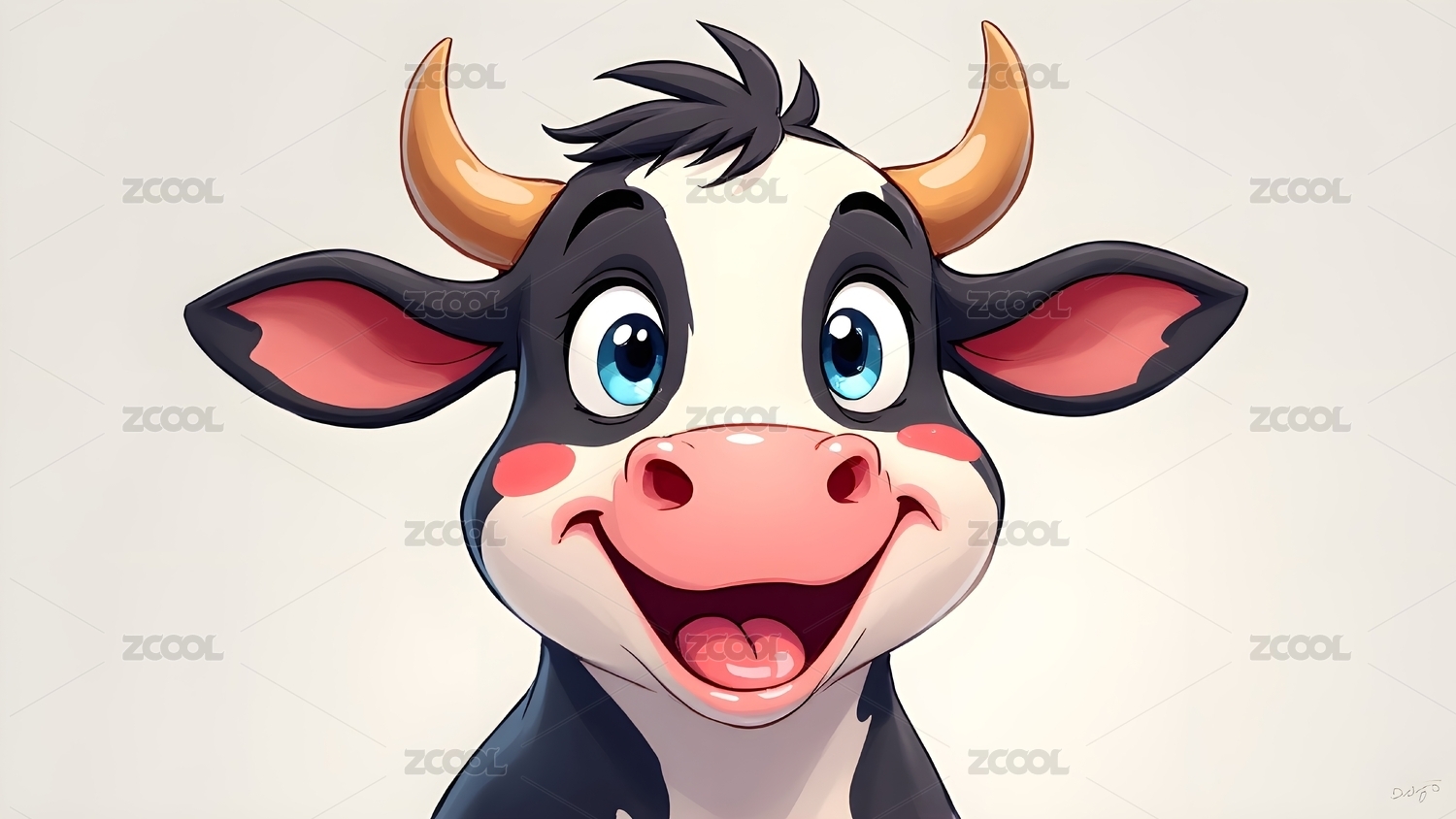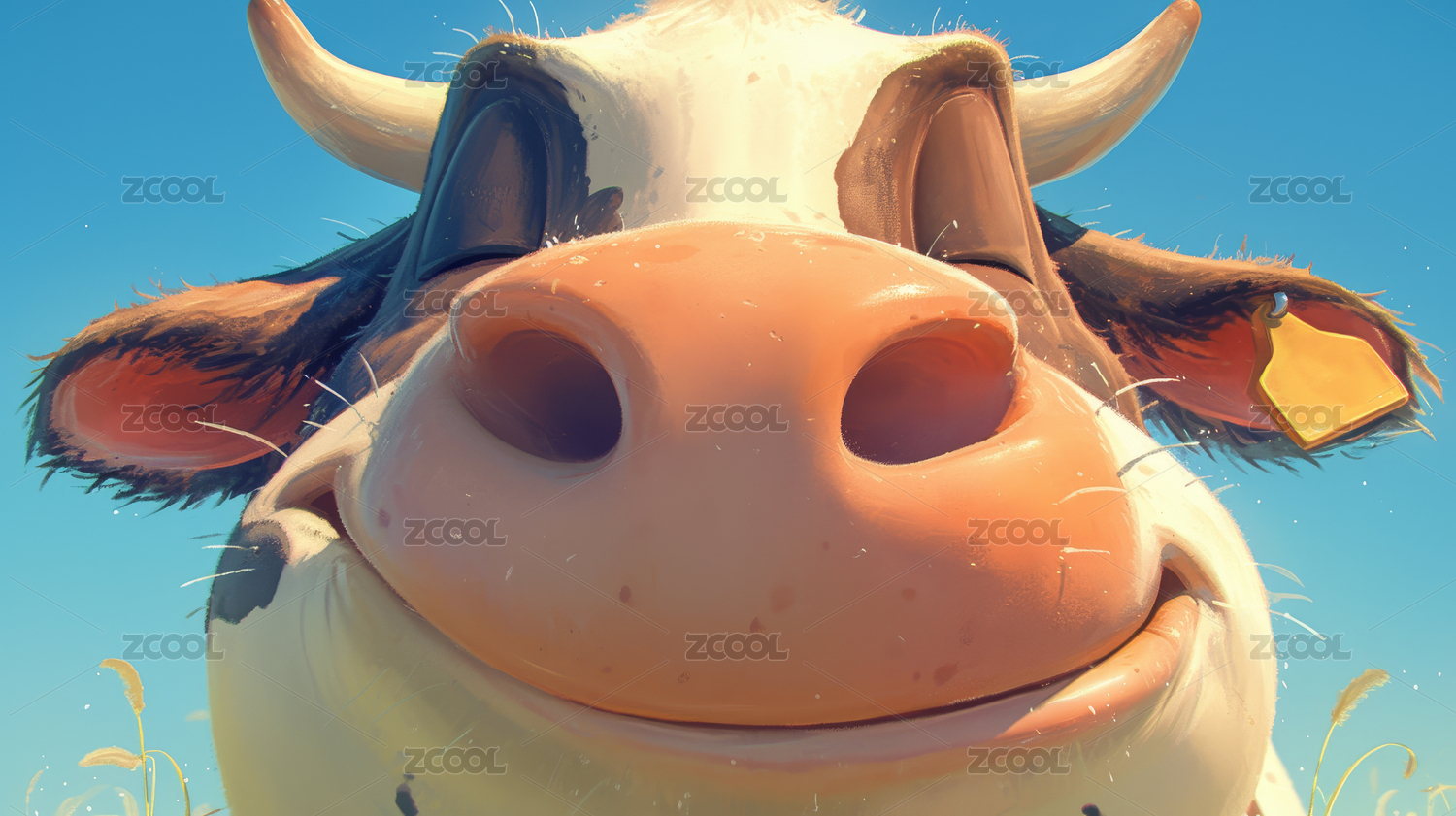 微笑的卡通奶牛特写
