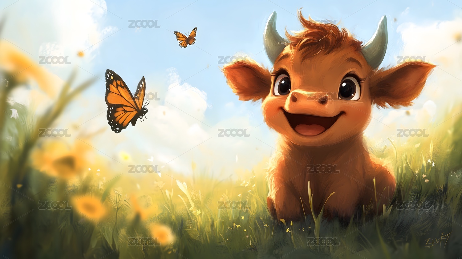 快乐的小牛和蝴蝶