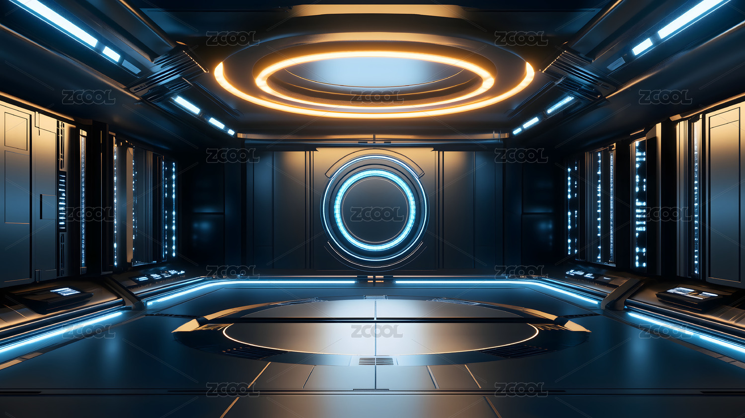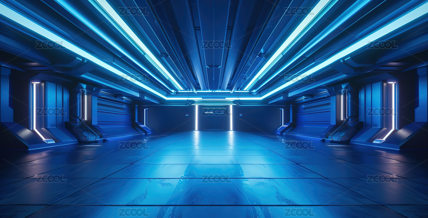未来,科技,走廊,灯光,反射,金属,地板,墙壁,空间,概念