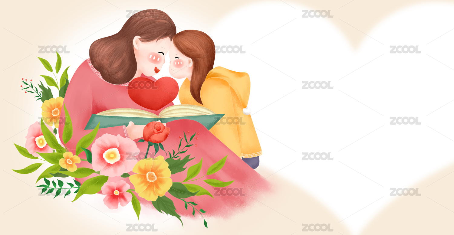 感恩节,插图,母亲节,妇女节,孩子,阅读,亲子,家庭,教育,儿童节