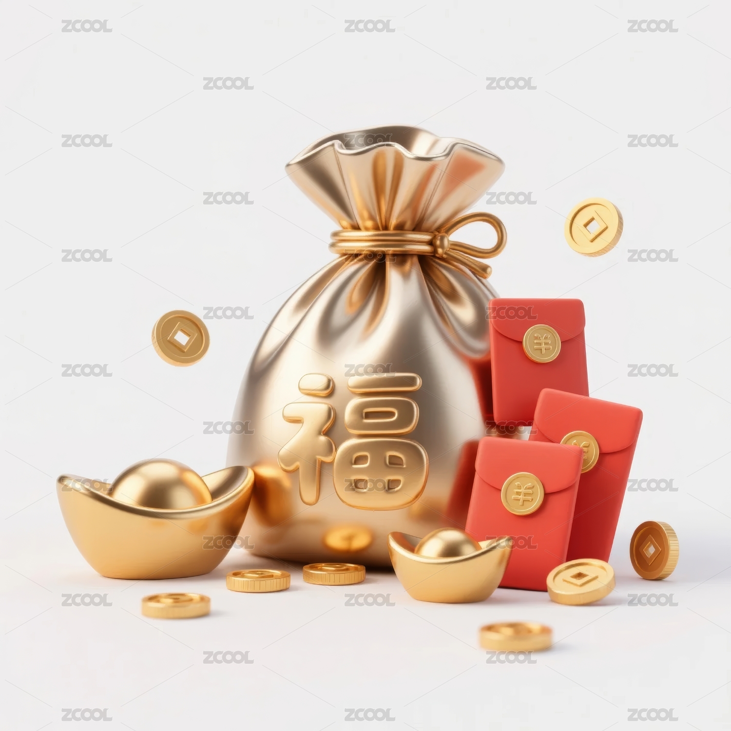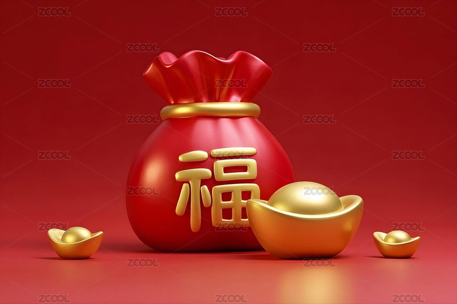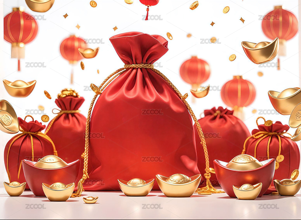新年喜庆红色锦囊福袋聚宝袋元宝金币