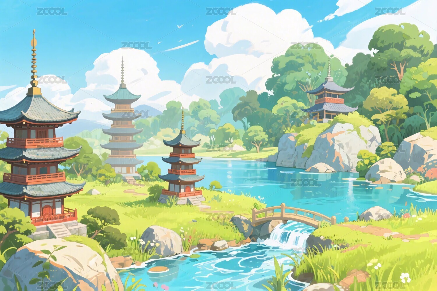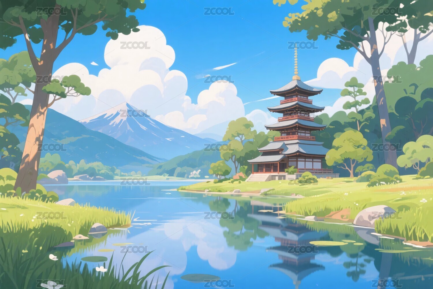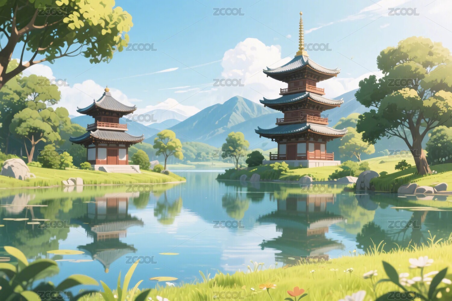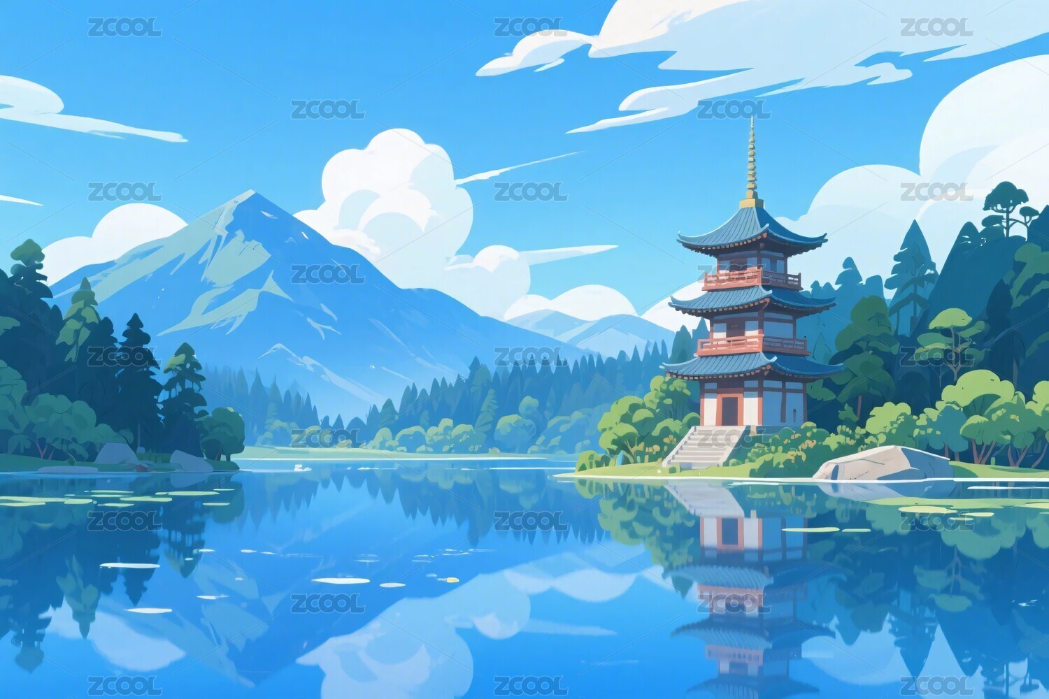 中国风,山水,湖泊,亭子,风景,大暑,立夏,明亮,清新,晴朗