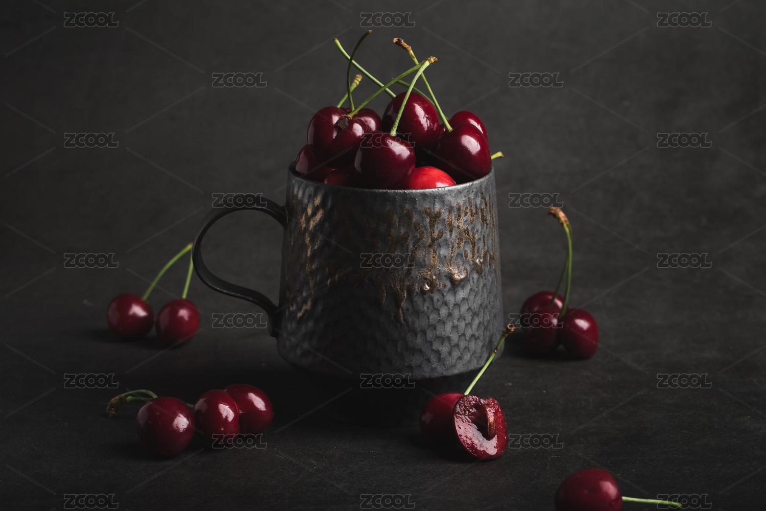 复古暗调风格杯子里的樱桃