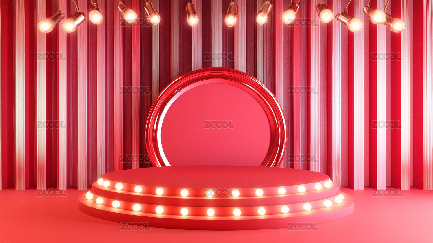 红色舞台灯光环绕展示台背景