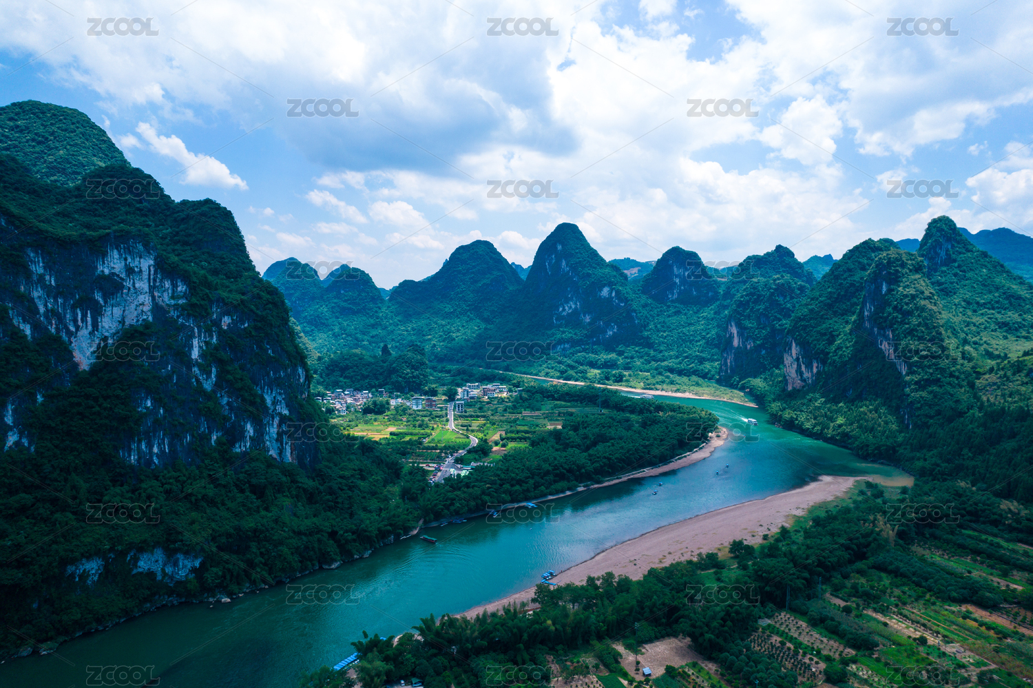 桂林山水,喀斯特地貌,鸟瞰,兴坪古镇,老寨山