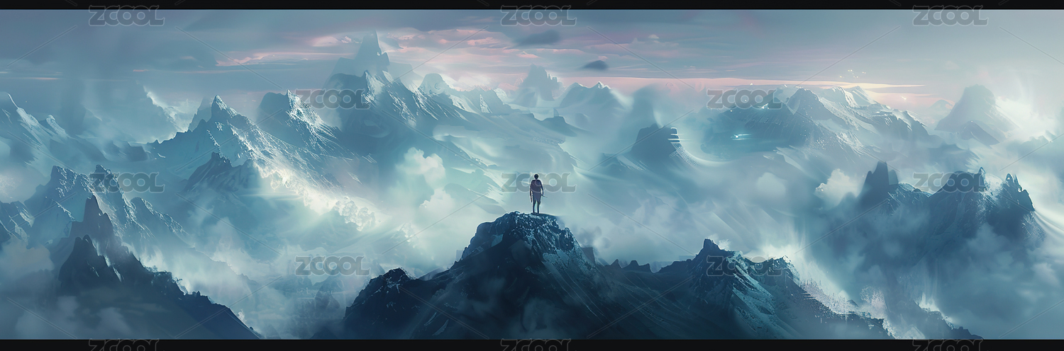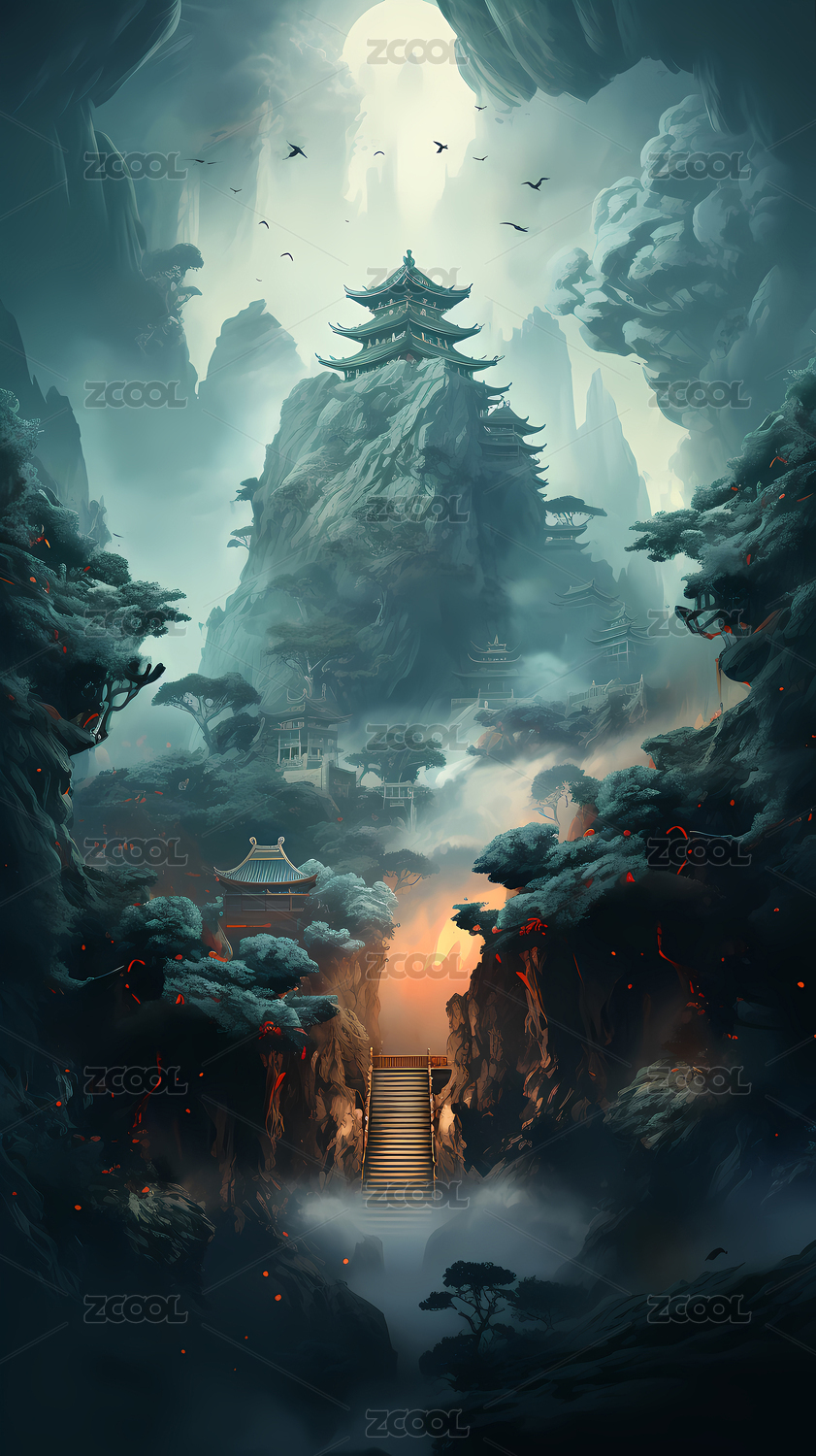 山清水秀的中国传统雾霭山水背景 诗情画意