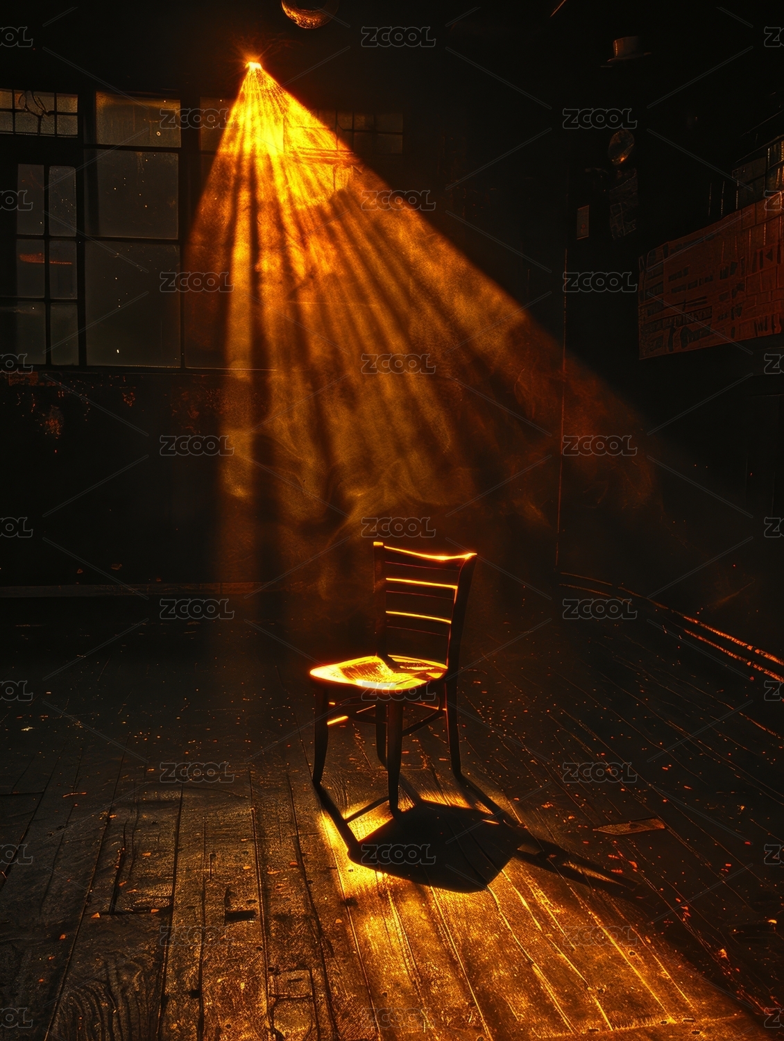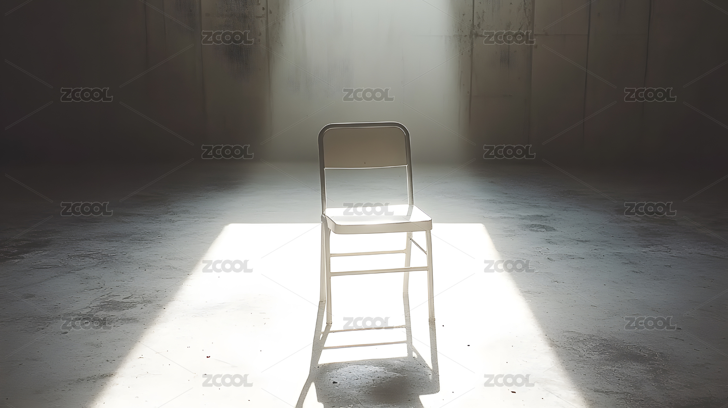 椅子,折叠椅,荒废,破旧,厂房,通道,窗户,光线,落灰,诡异