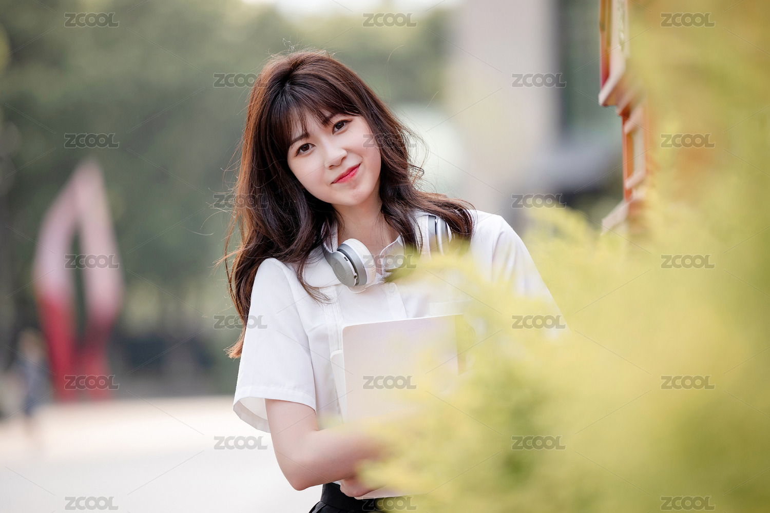 耳机,书本,中国人,亚洲人,学生,女生,女孩,美丽,漂亮,清纯