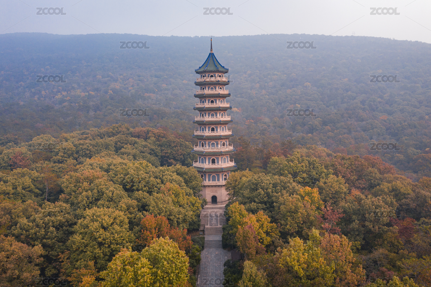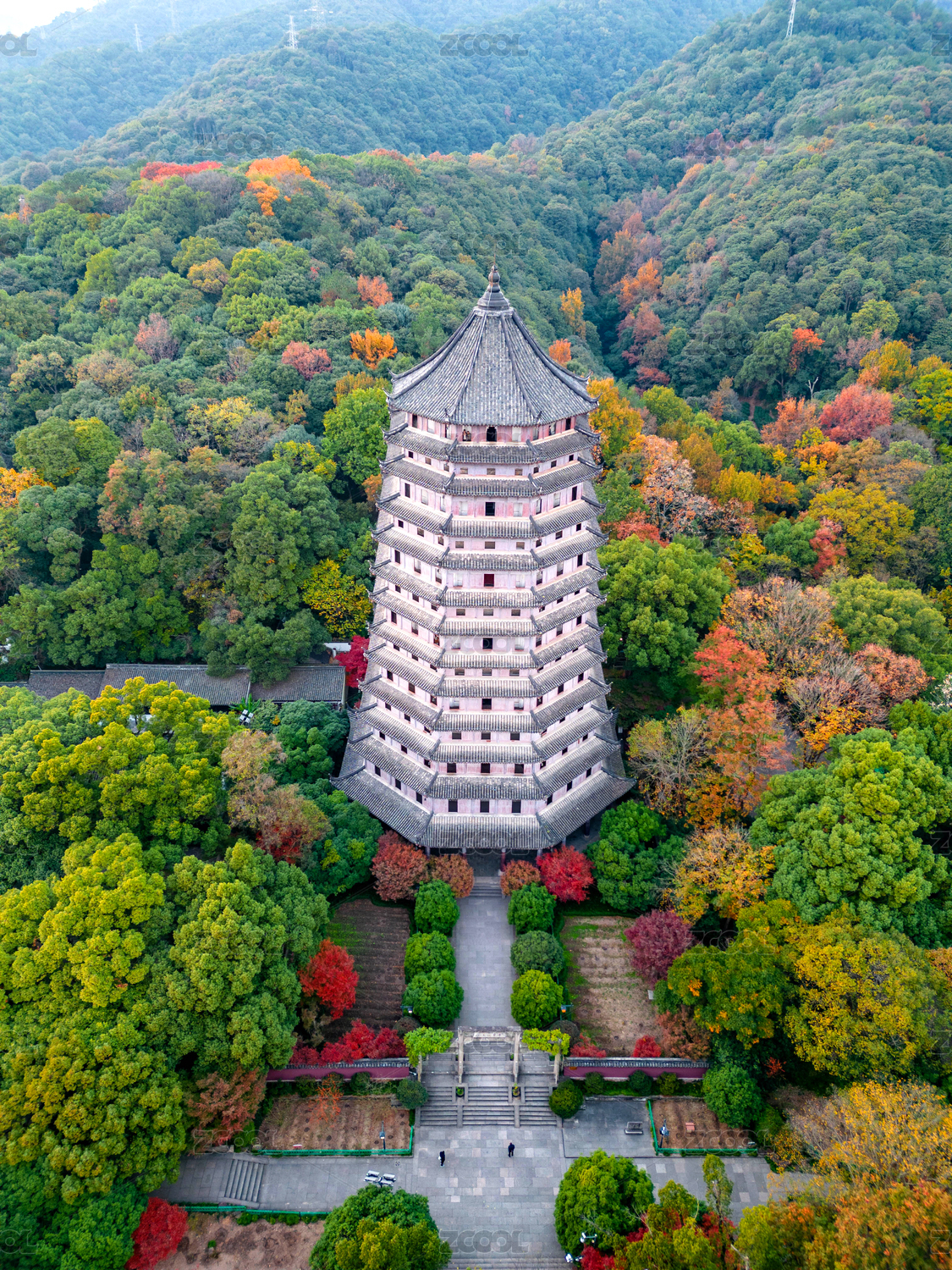深秋山林中的杭州六和塔