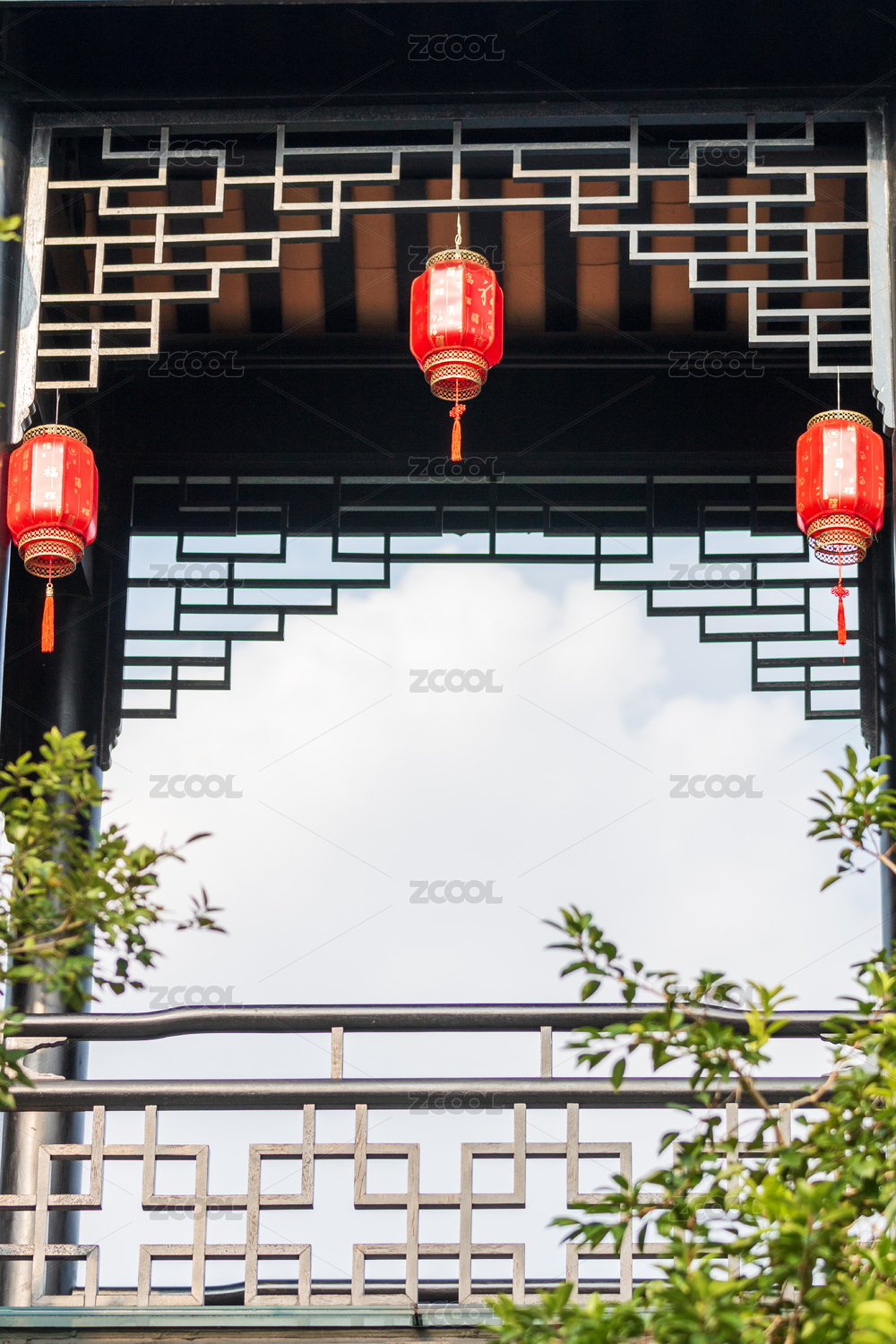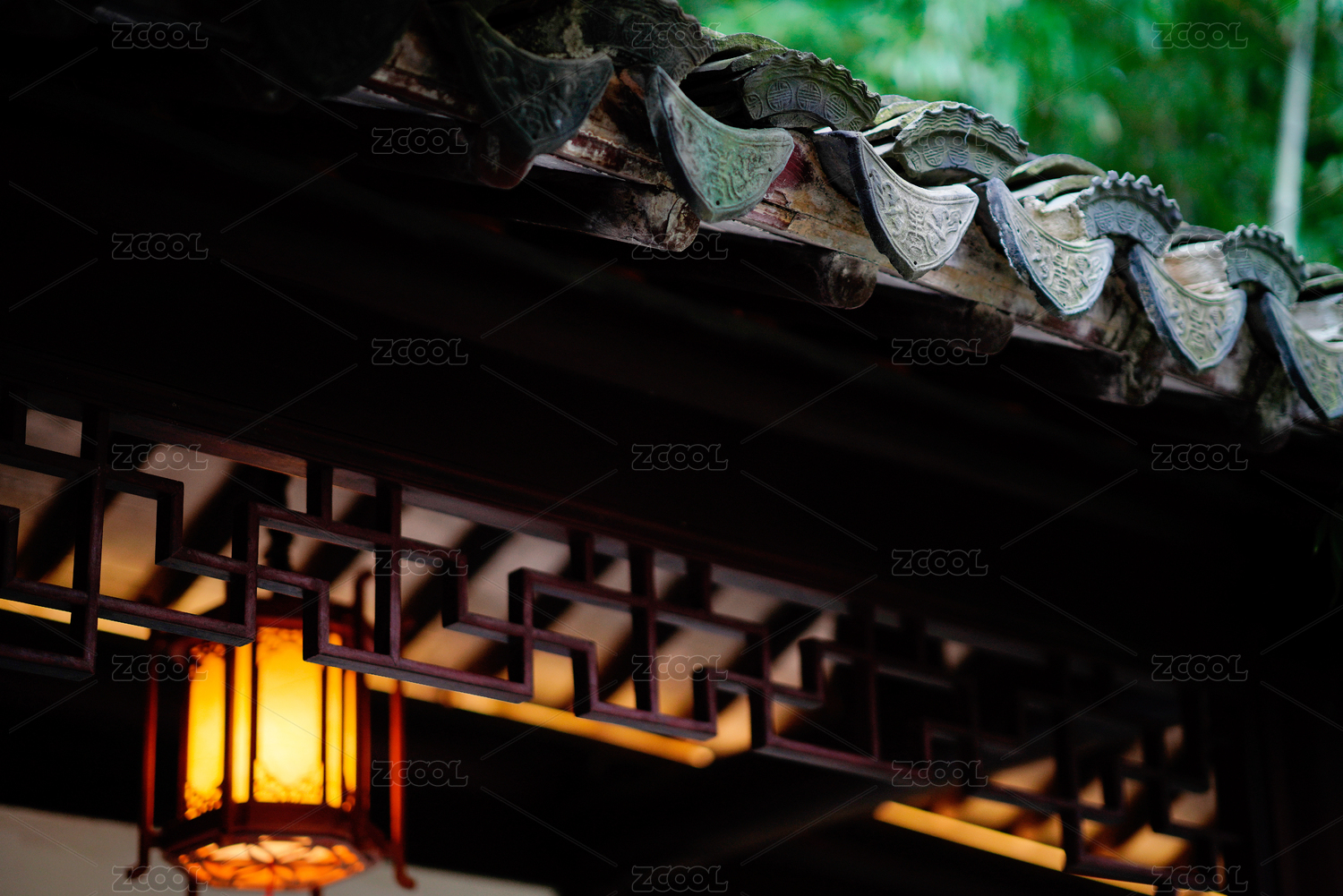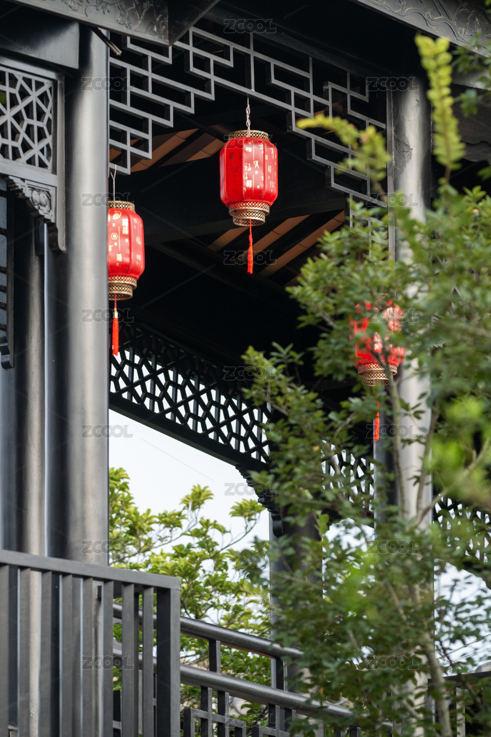 中国苏州园林的灯笼与古建