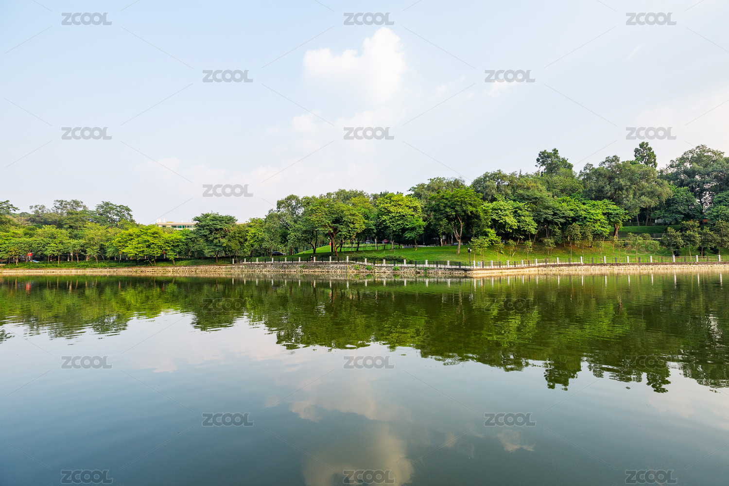 广州番禺大学城中心湖公园湖泊树林自然风光