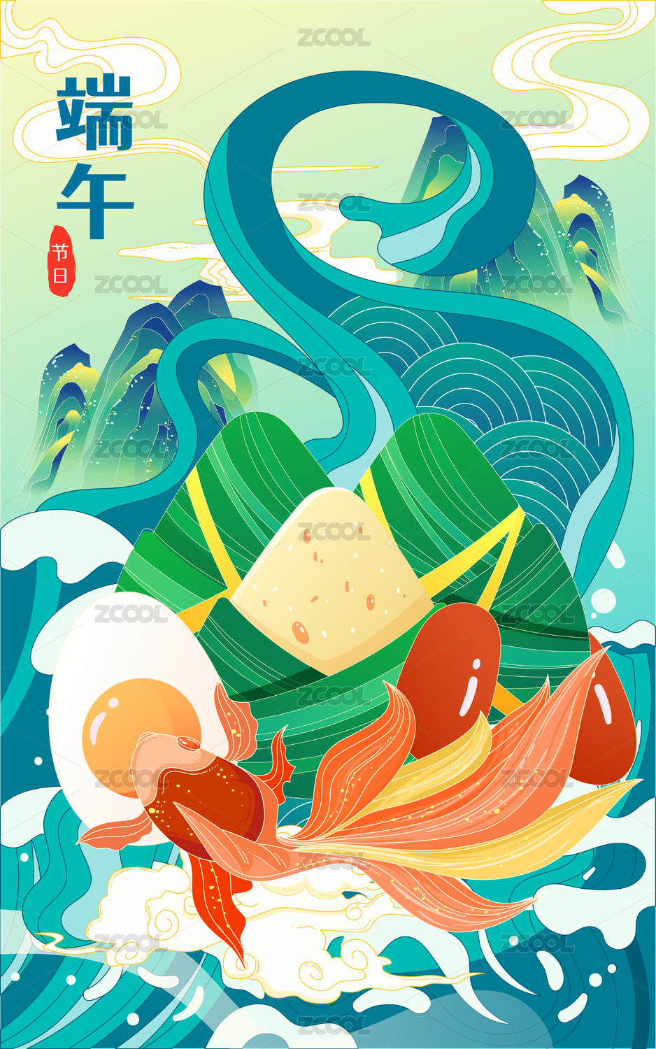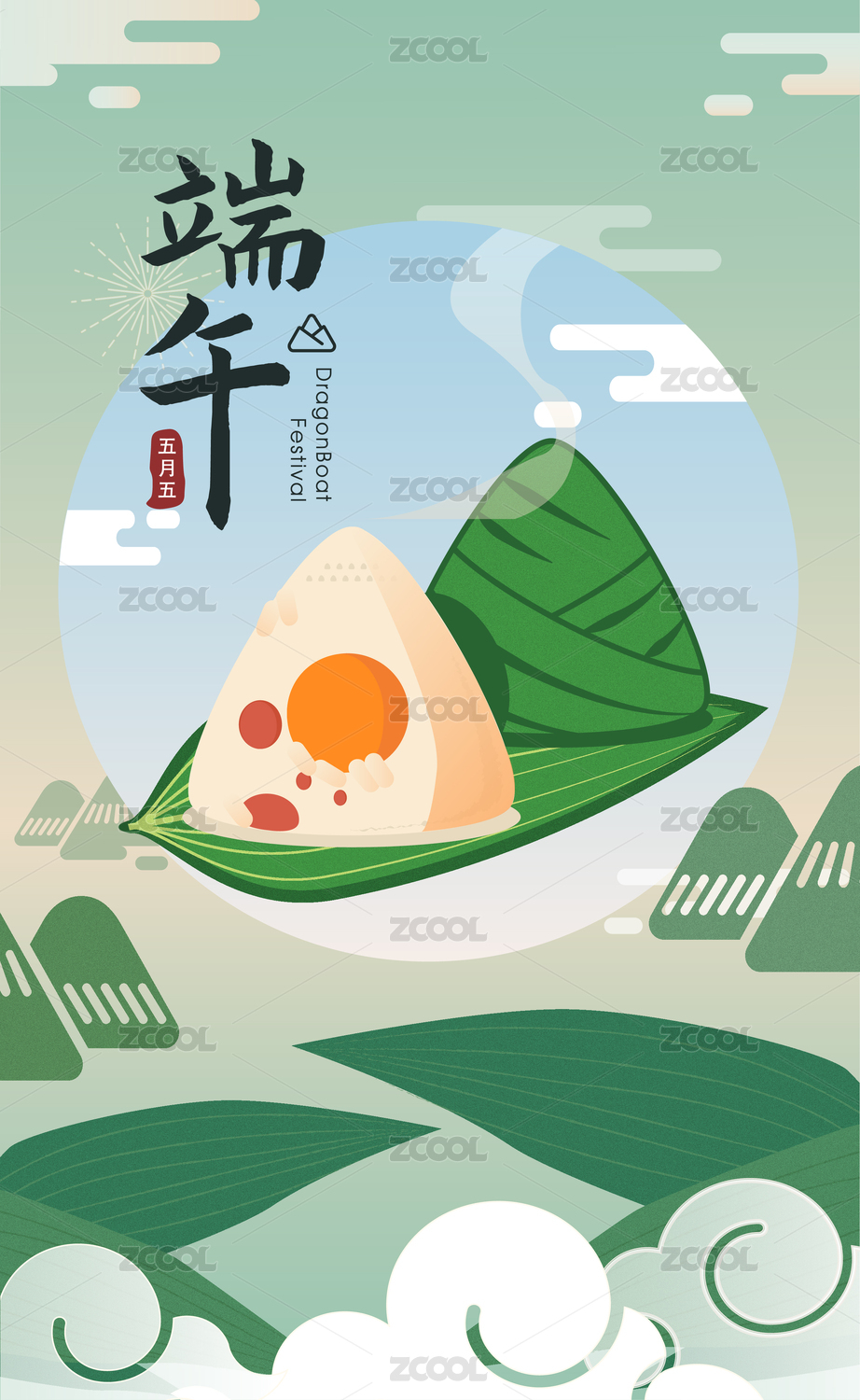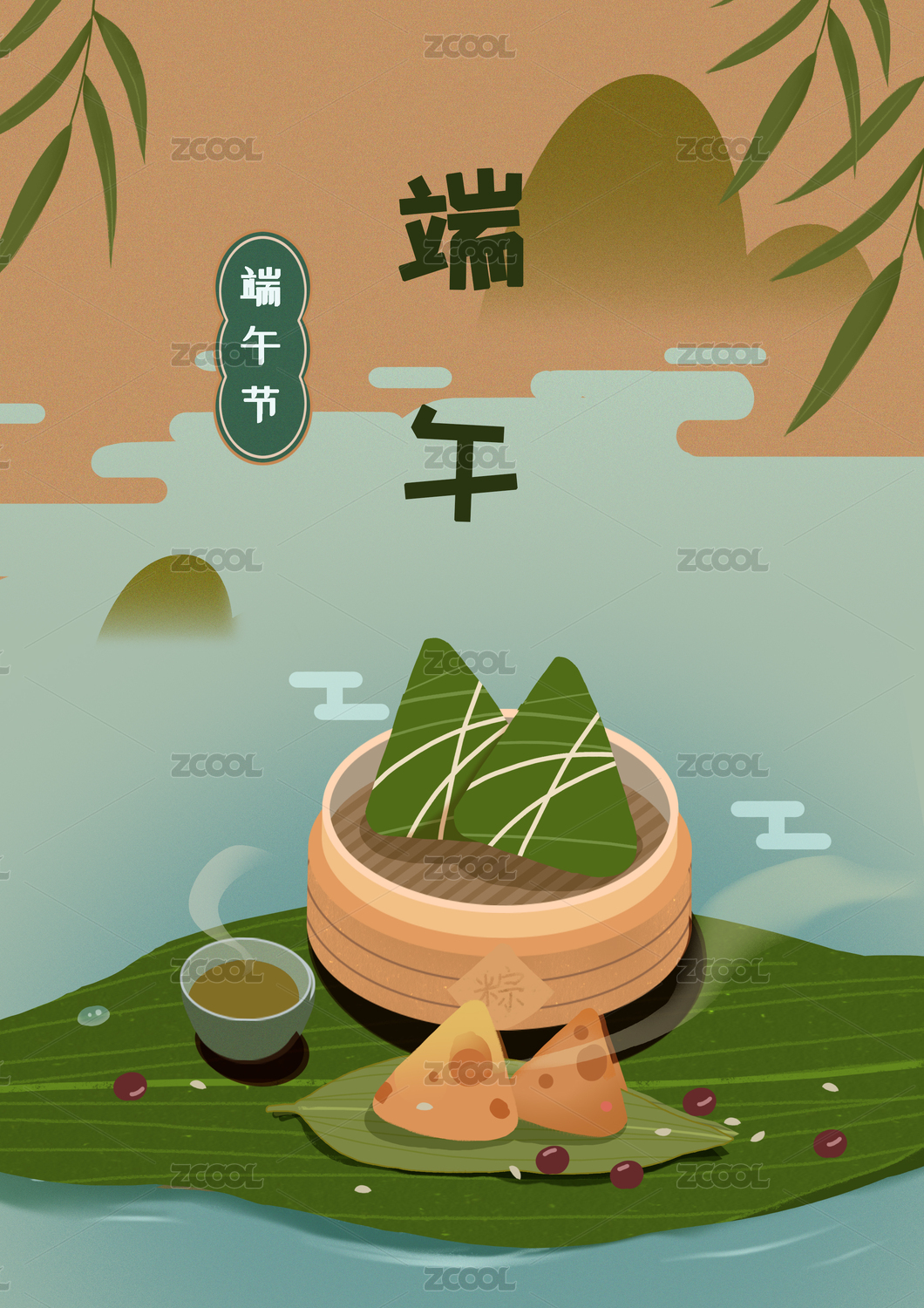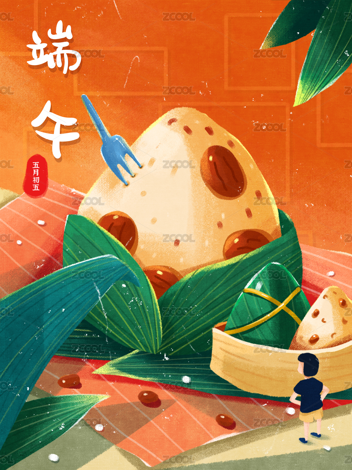 端午节吃粽子国潮插画传统节日习俗活动海报