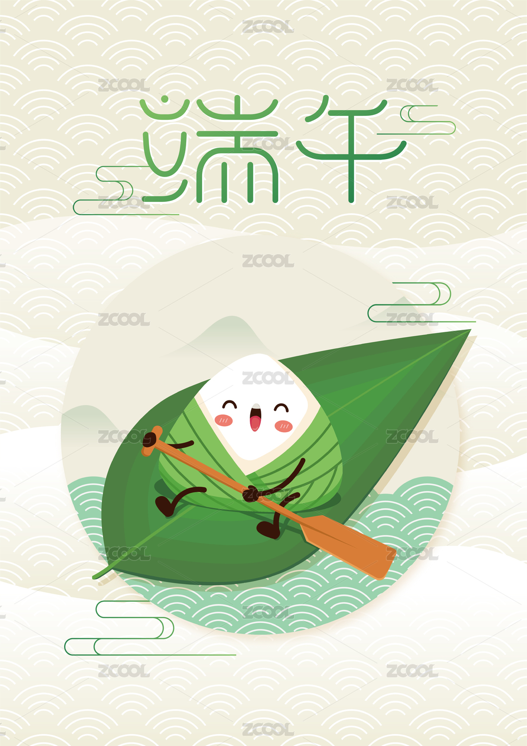 国潮端午节赛龙舟吃粽子插画中国风节日海报