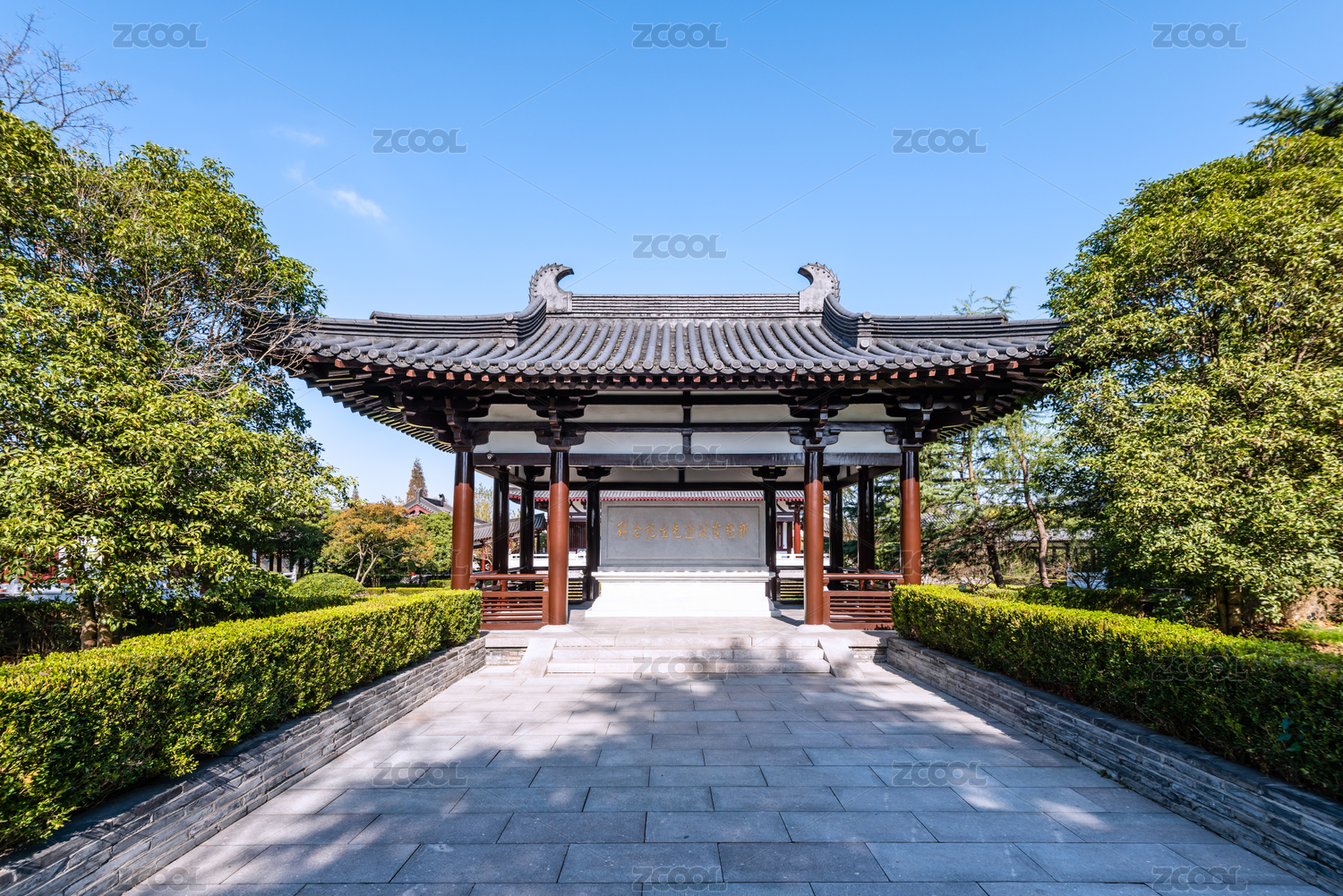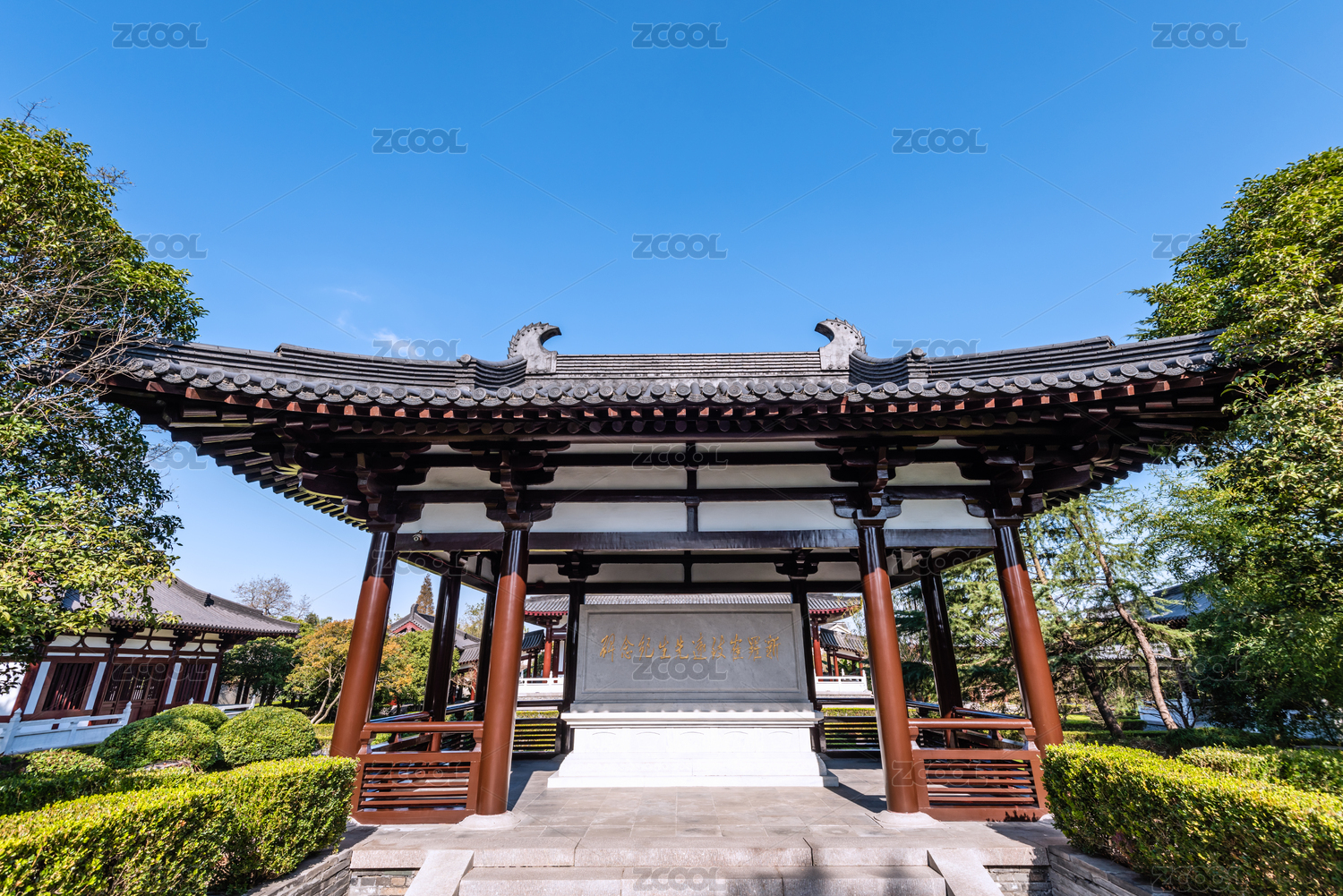 秋天中国扬州唐城遗址的崔致远纪念馆