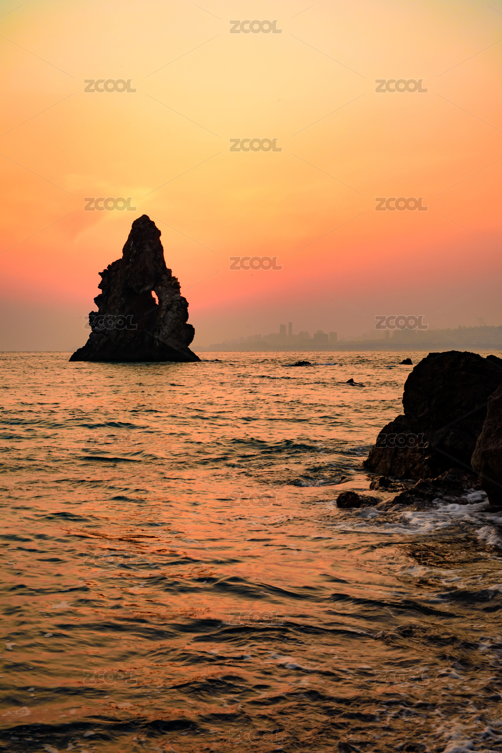 中国浙江省温州市洞头区朝霞映鸽尾礁