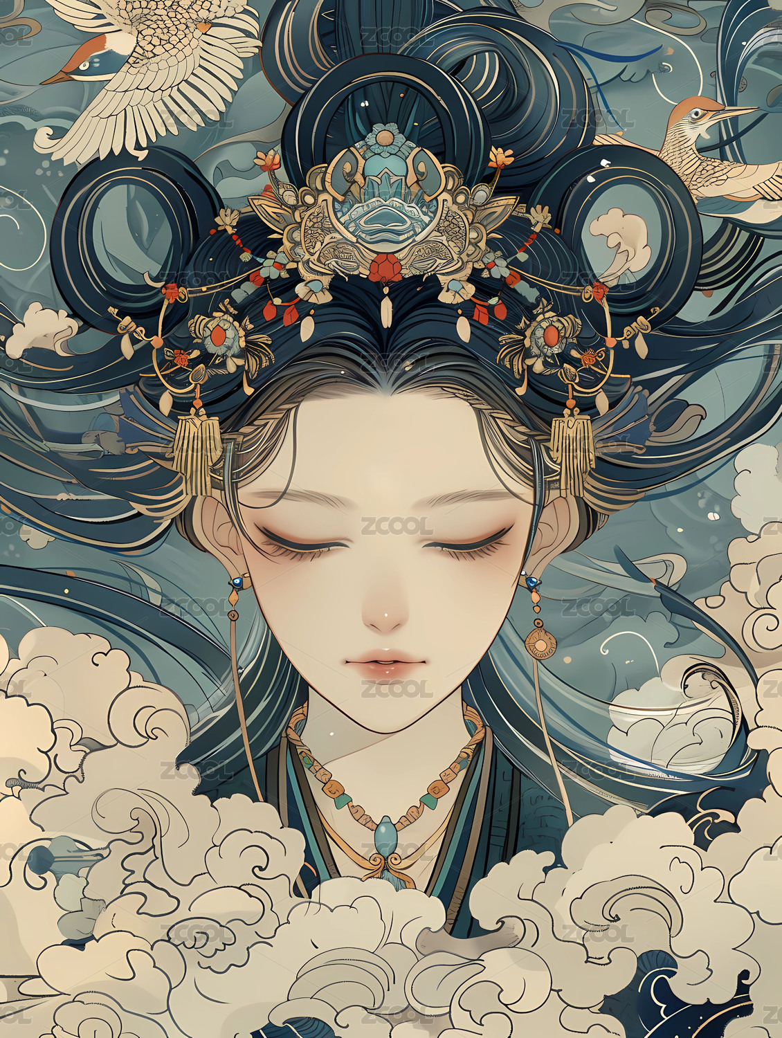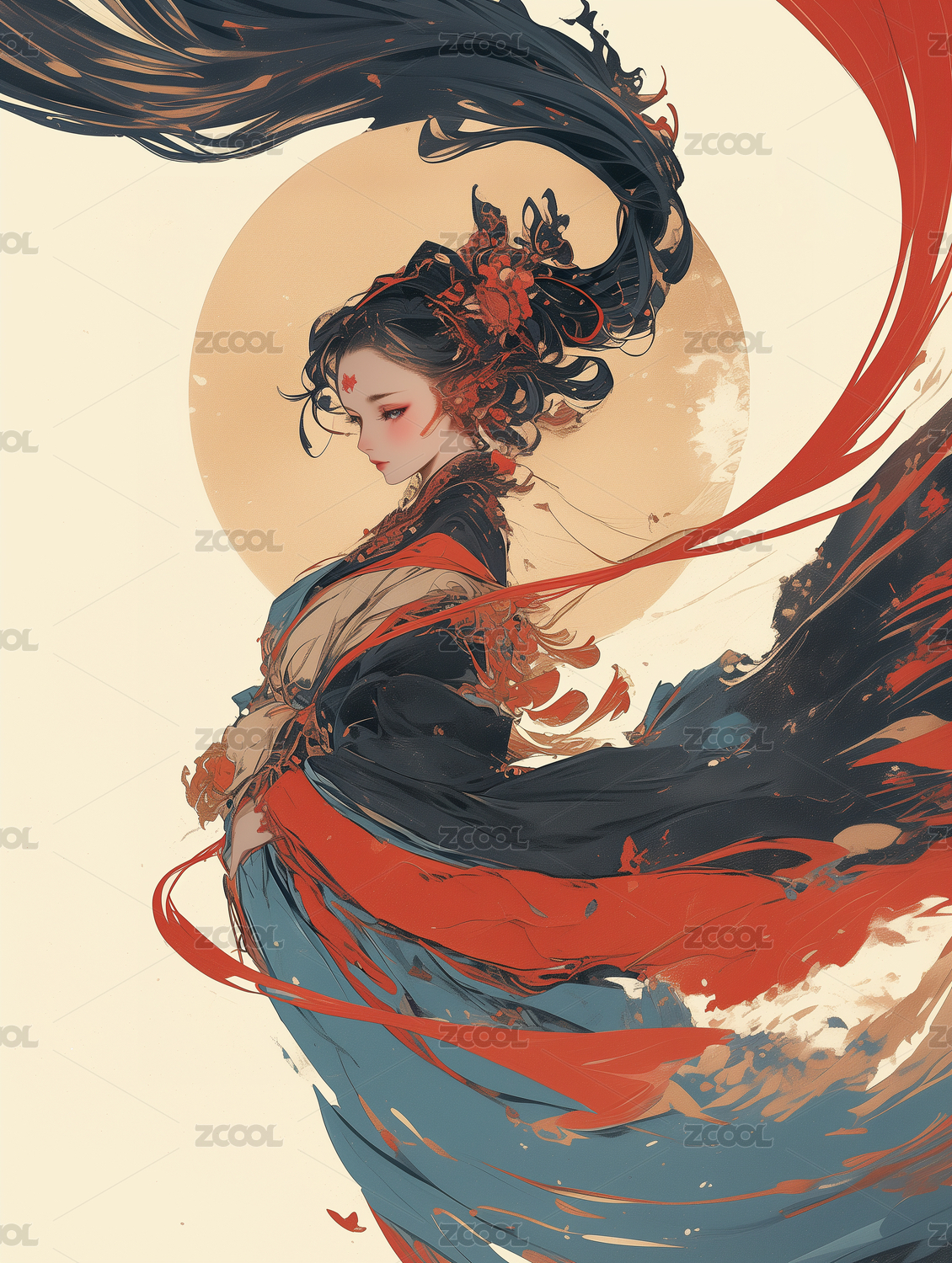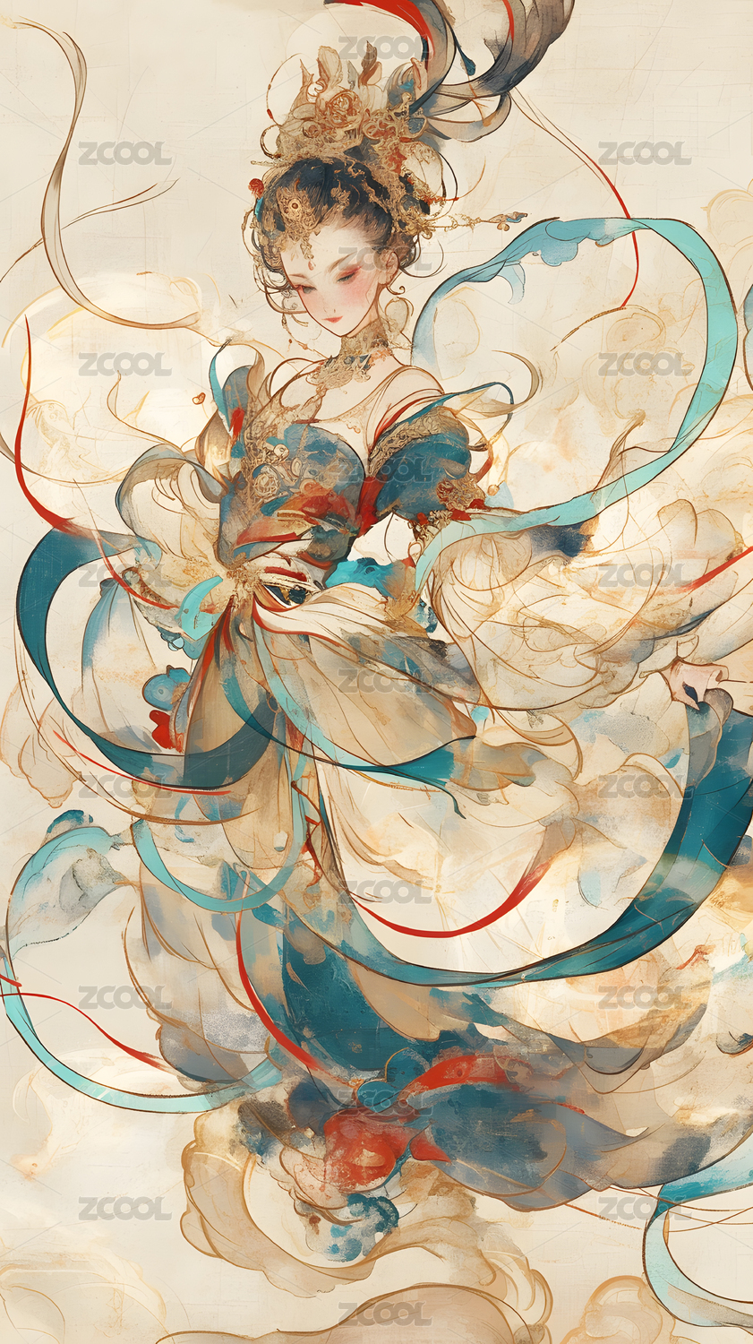 敦煌古风美女国潮汉服浓墨重彩复古华丽插画