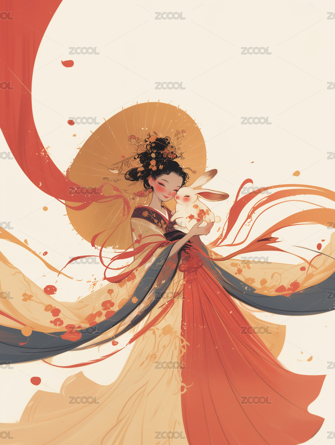 中秋节嫦娥节日氛围插画