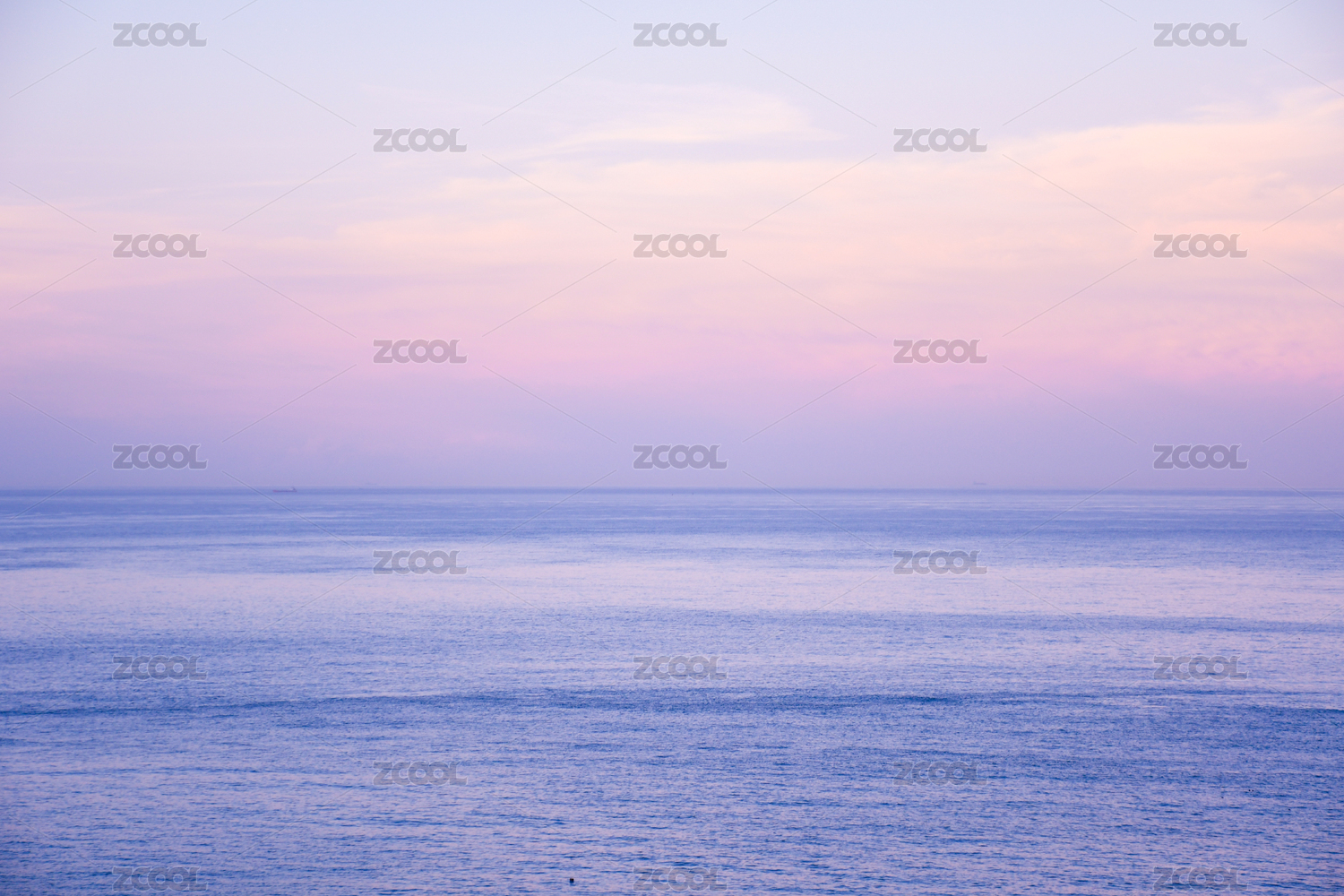 山东青岛崂山蓝色紫色晚霞渐变海面