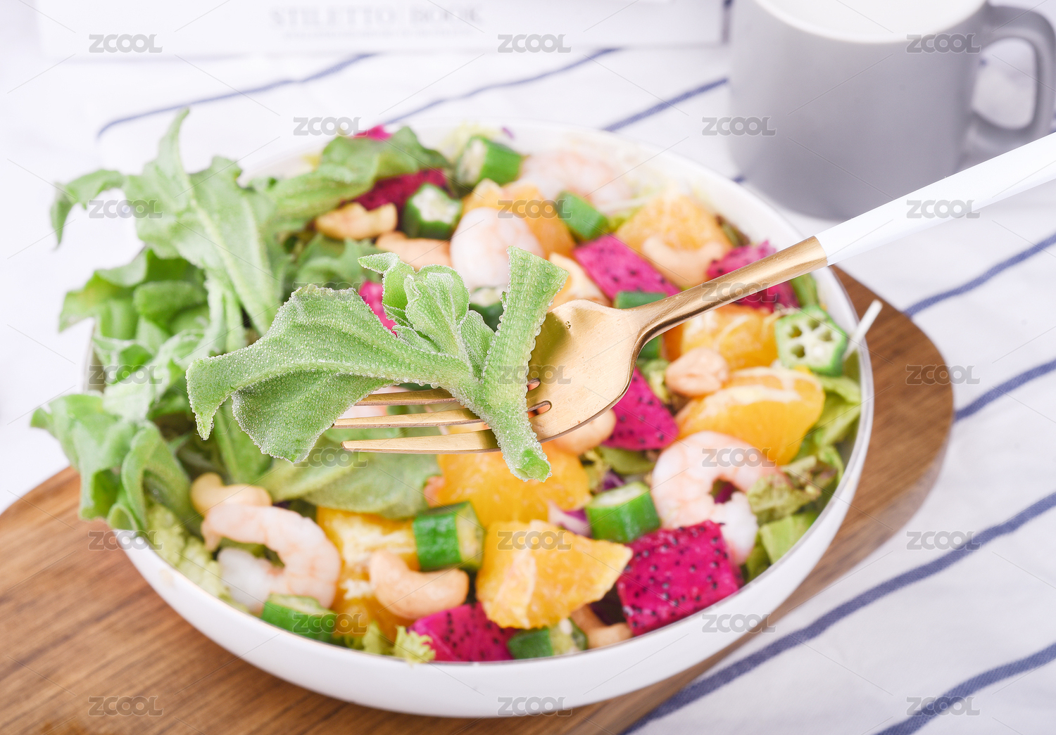 盘装虾仁蔬菜水果蔬菜沙拉