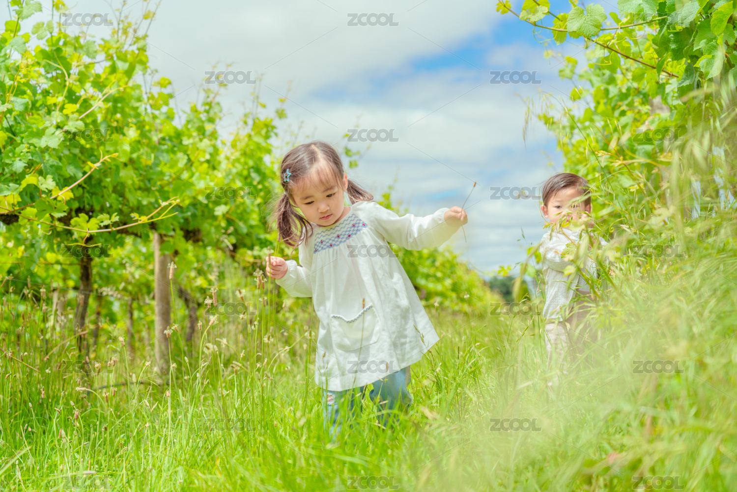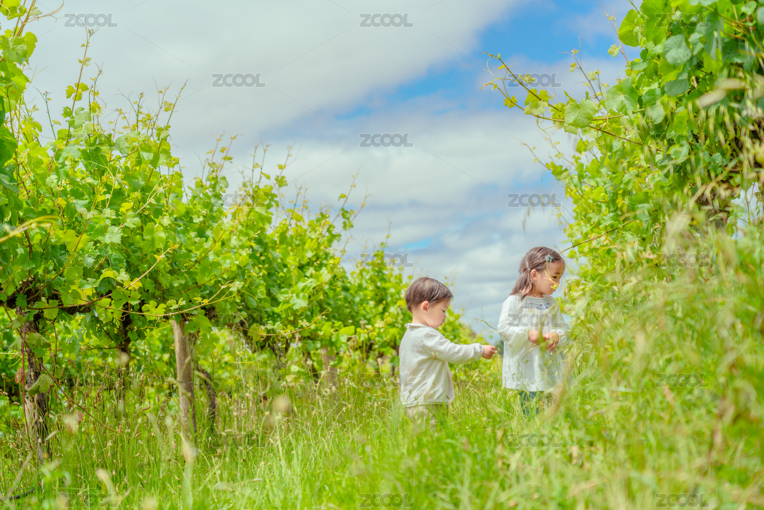 葡萄园里的两个快乐小孩