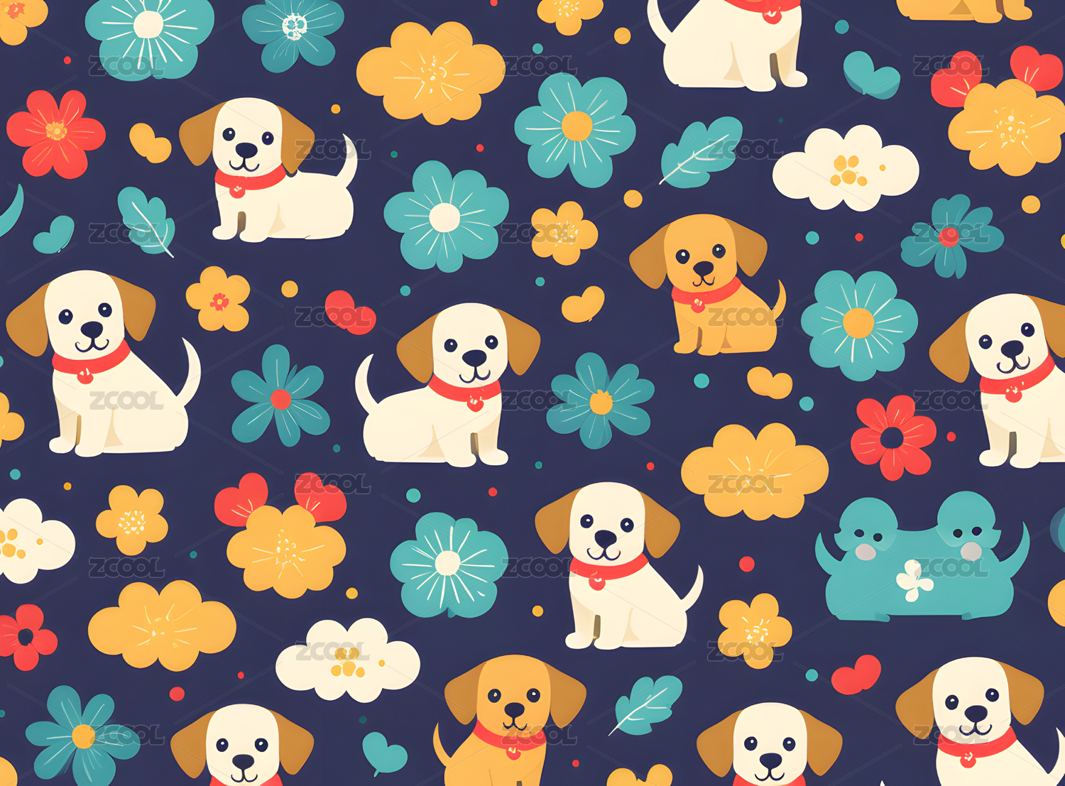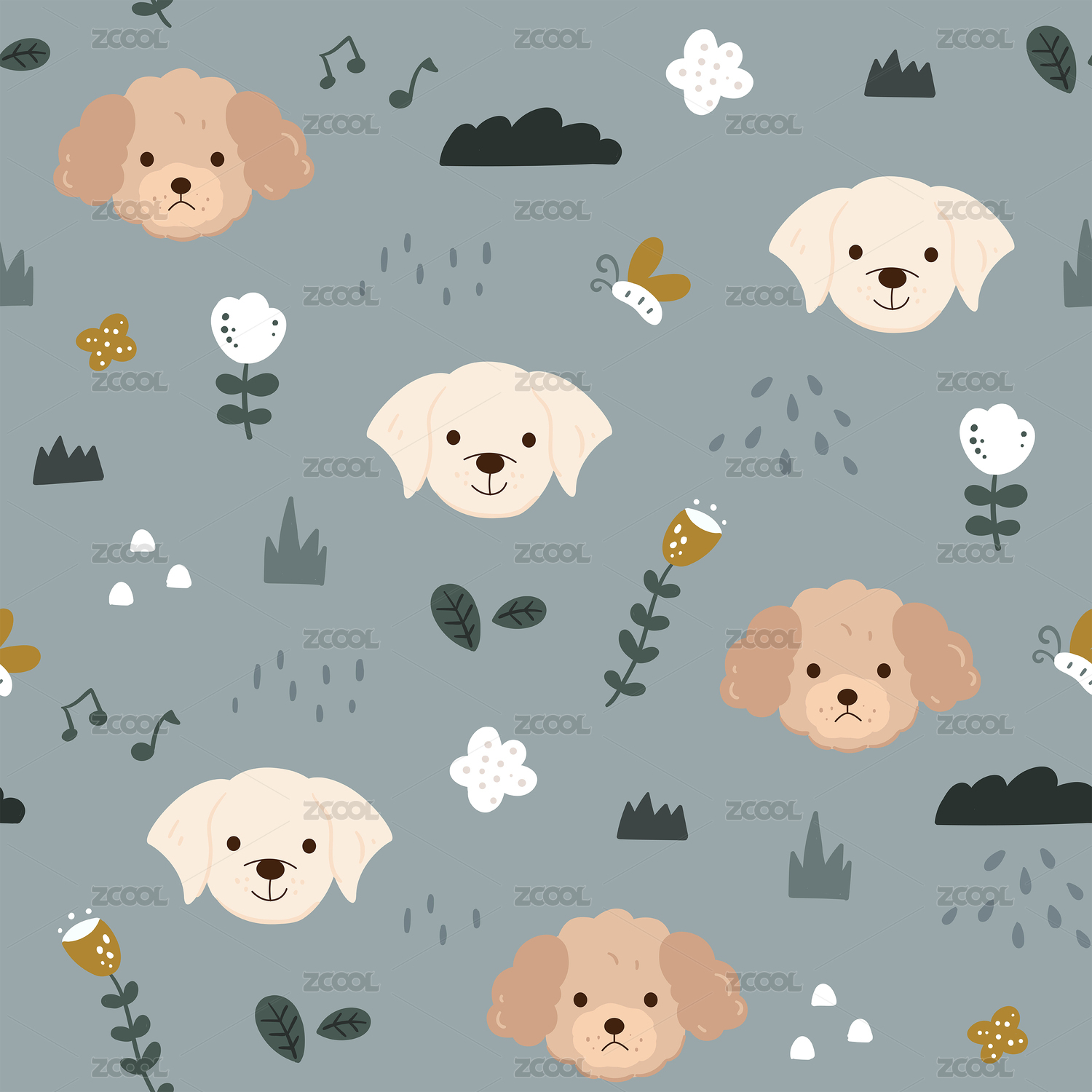 可爱,卡通,四方连续,图案,小狗,狗,狗狗,宠物,印花,花型