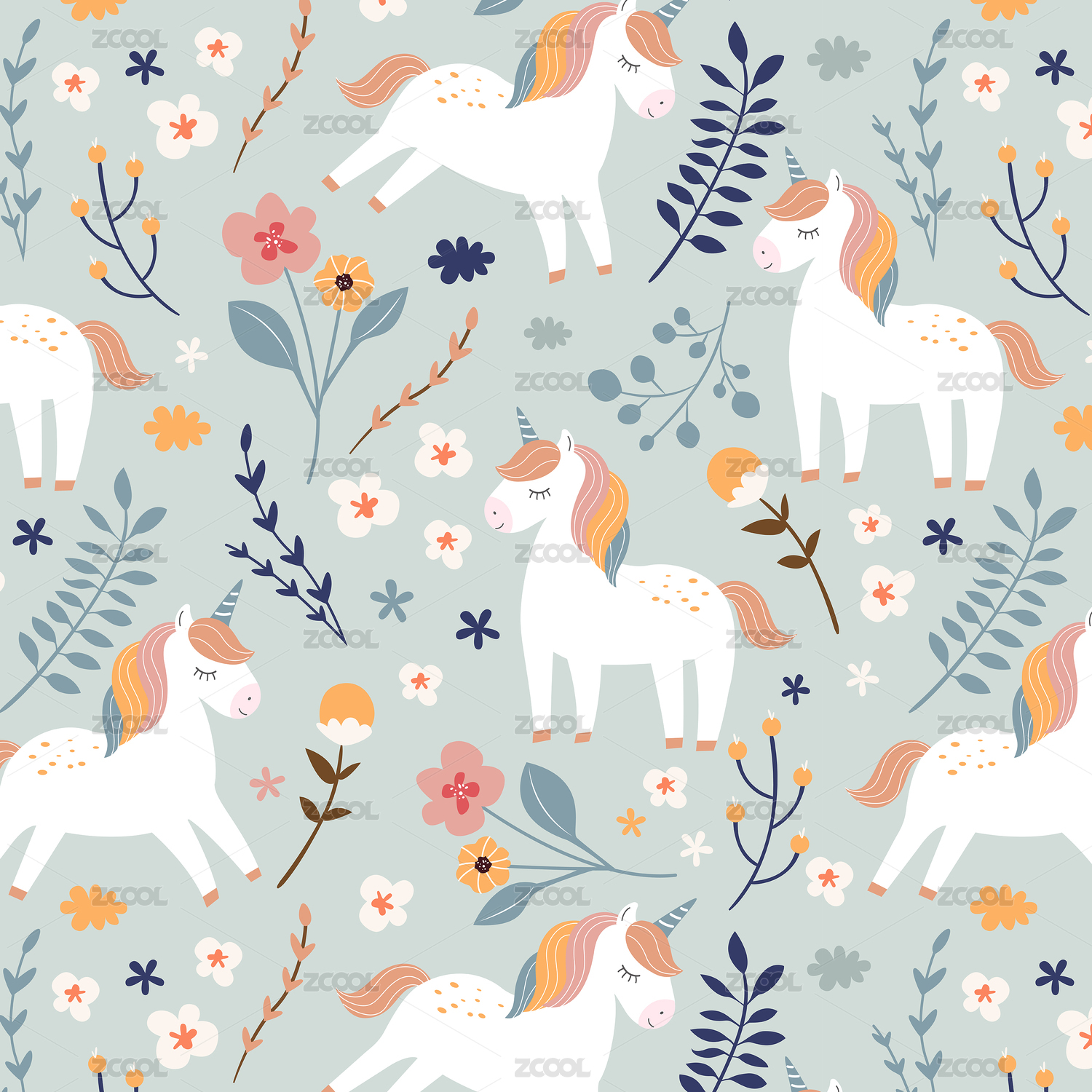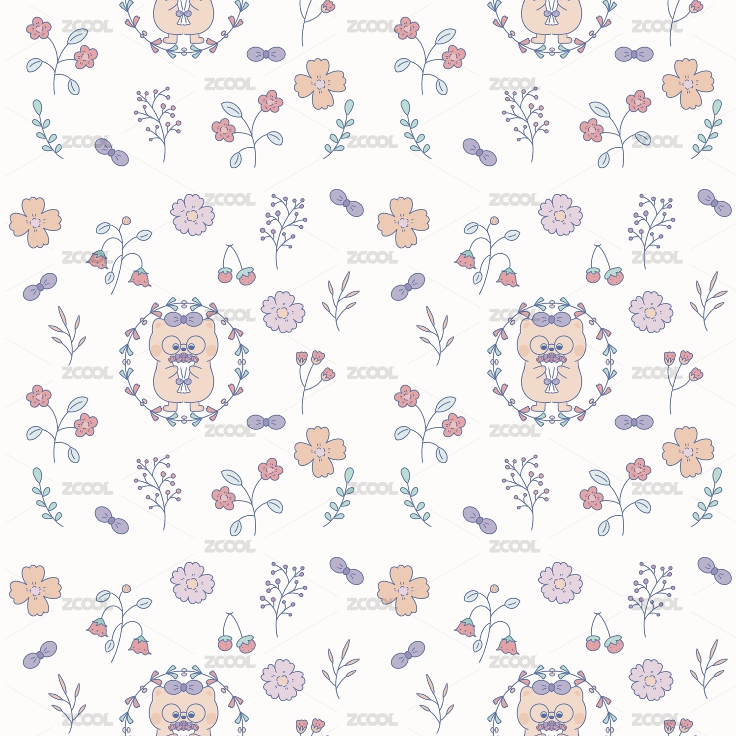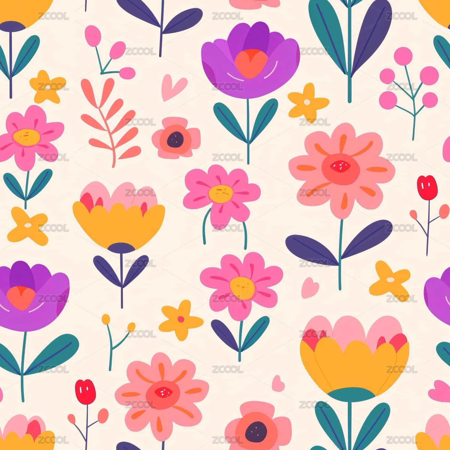手绘植物花卉可爱卡通简笔画纺织数码印花