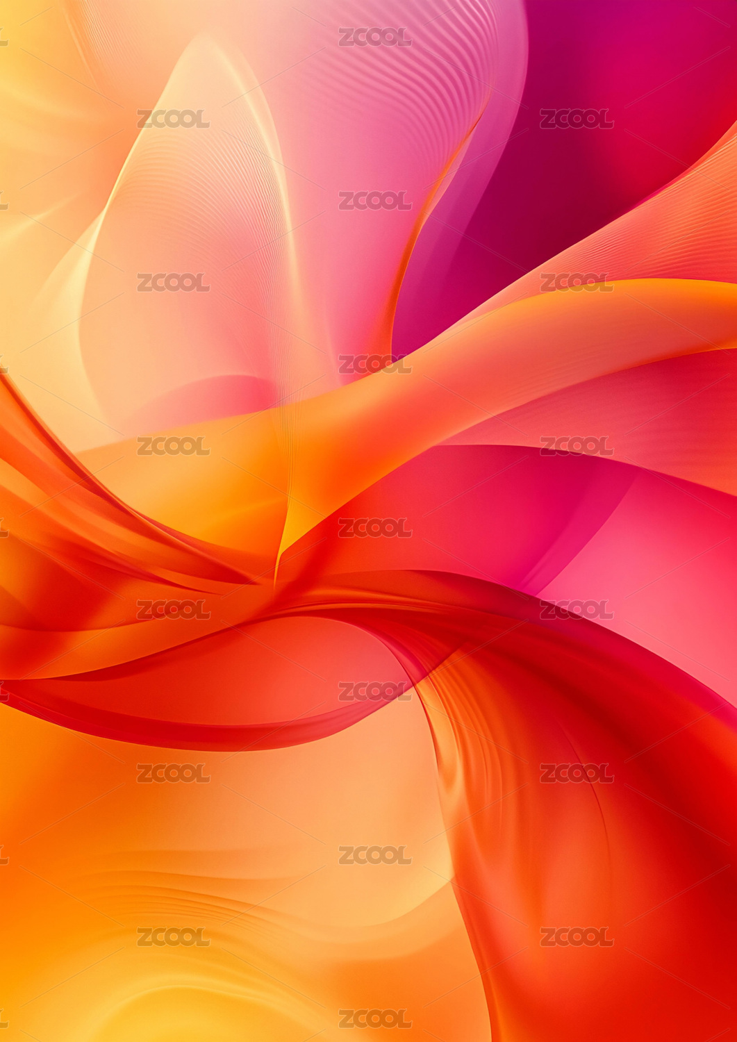 数码橘白色梦幻曲线抽象图形海报背景