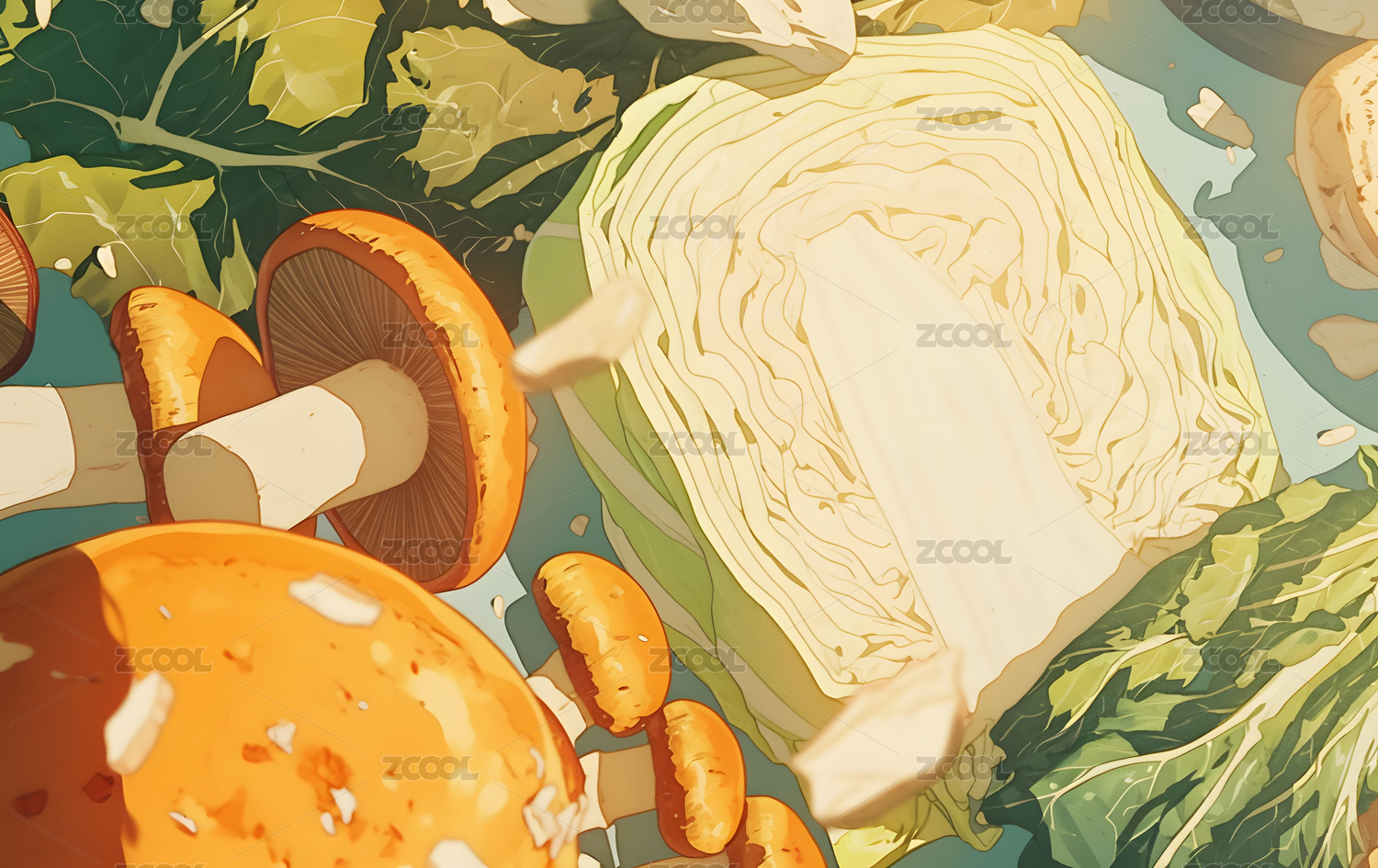 复古日漫风格插画蔬菜