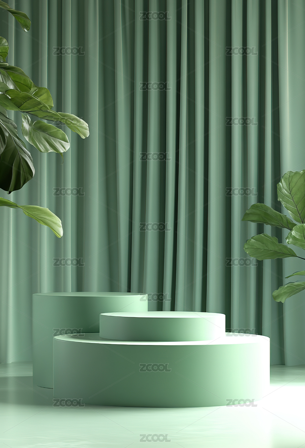 绿色系几何展示台场景